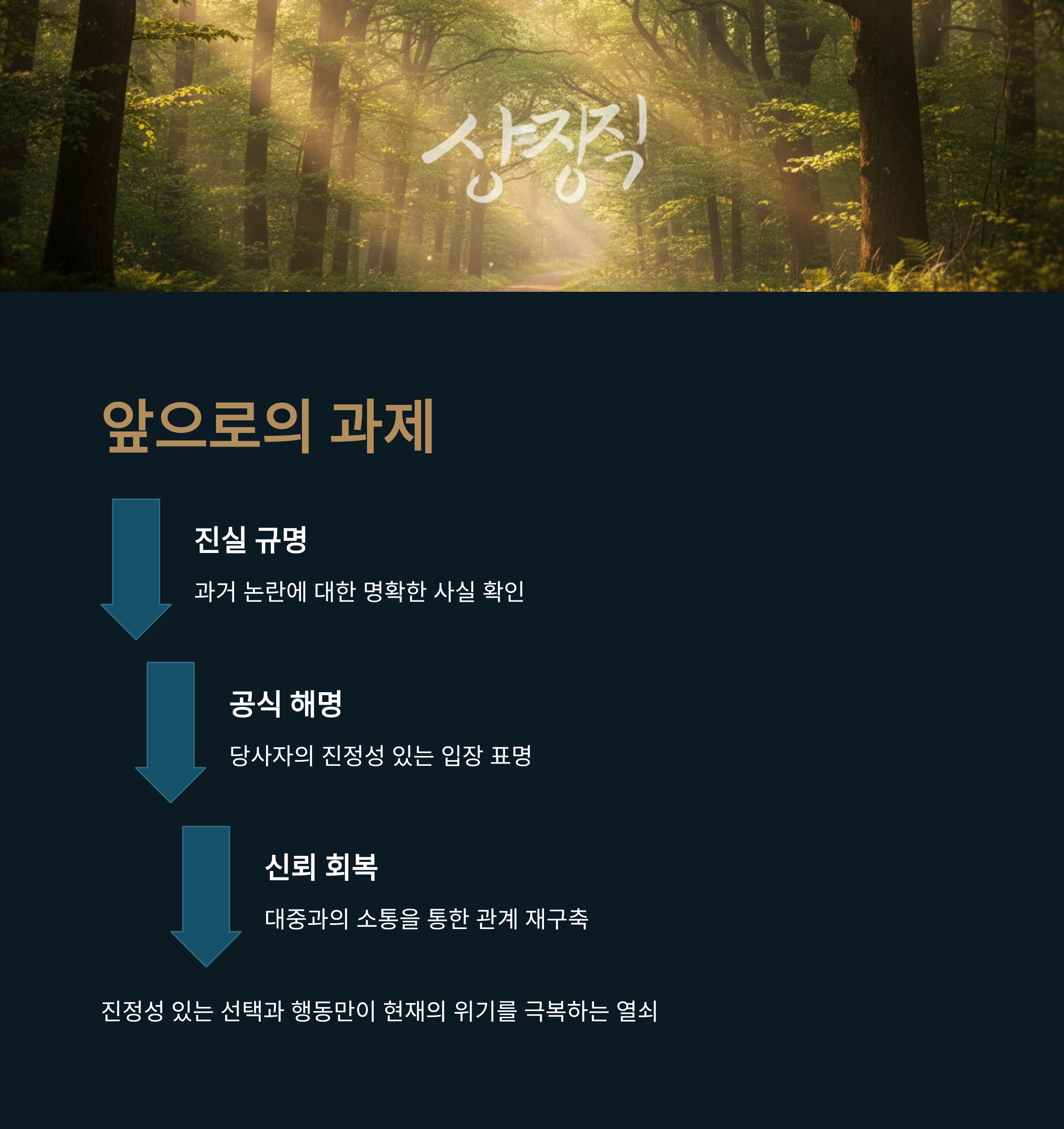 대중은 높은 도덕적 기준을 요구하며, 이는 배우로서뿐만 아니라 대중적 인플루언서로서의 책임을 다해야 함을 의미합니다. 과거를 둘러싼 불투명함은 단순히 시간이 해결해주지 않기 때문에, 진실을 밝히고 대중의 신뢰를 회복하기 위한 노력이 필요합니다. 모든 논란을 떠나, 그의 진정성 있는 선택과 행동만이 현재의 위기를 극복하는 열쇠가 될 것입니다.