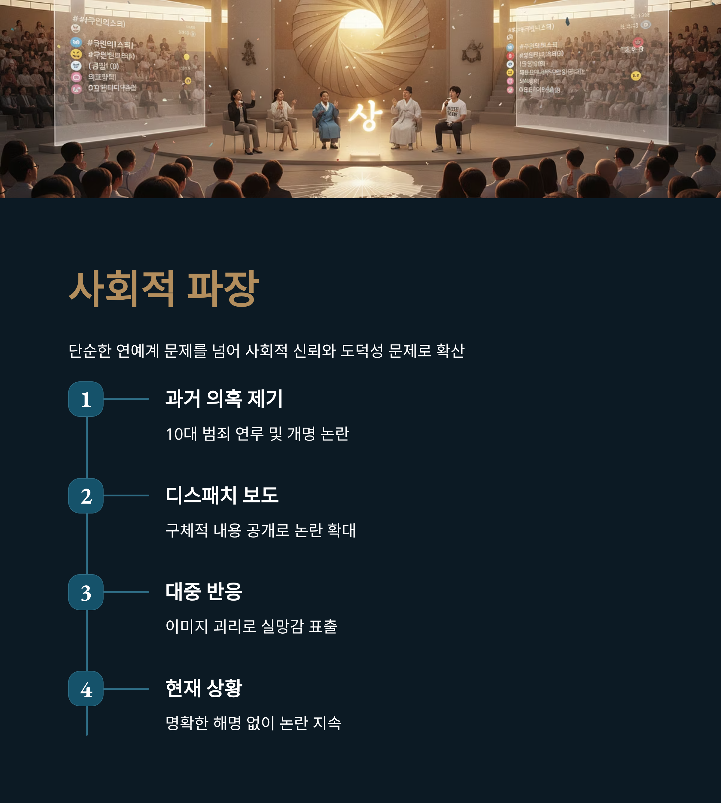 조진웅의 과거 논란은 대중적으로 큰 파장을 낳고 있으며, 이는 단순히 연예계 내부의 문제가 아닌 사회적 신뢰와 도덕성 문제로까지 확산되고 있습니다. 그의 과거 행적과 개명 논란에 대한 명확한 해명이 이어지지 않는 이상, 이 논란은 지속될 가능성이 큽니다. 동시에, 그가 앞으로 어떤 방식으로 대중과 소통하며 문제를 해결할지에 따라 그의 이미지는 크게 좌우될 것입니다.