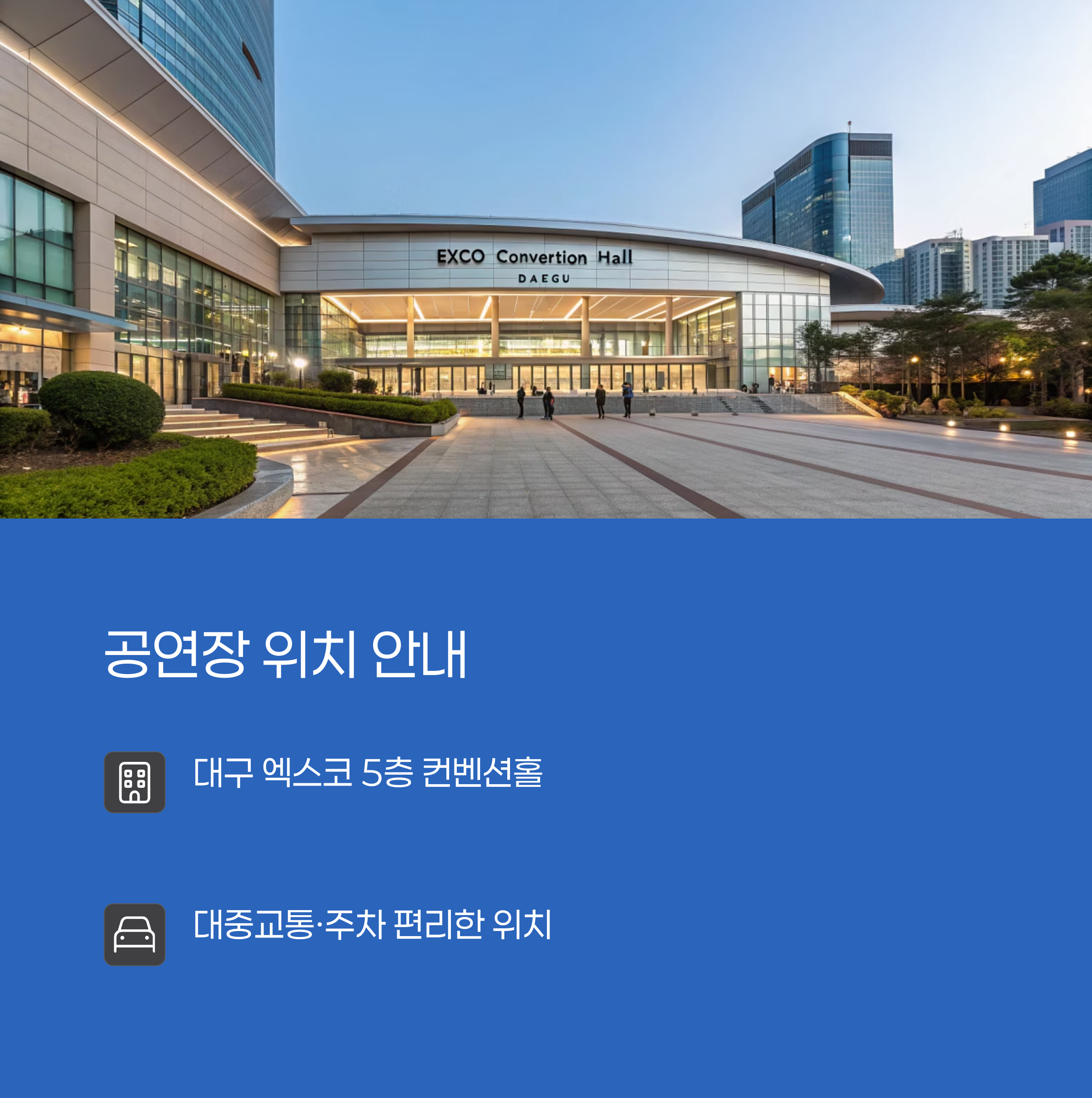 1. 공연 일정: 5월 24일 및 25일 대구 엑스코 홀에서 개최
