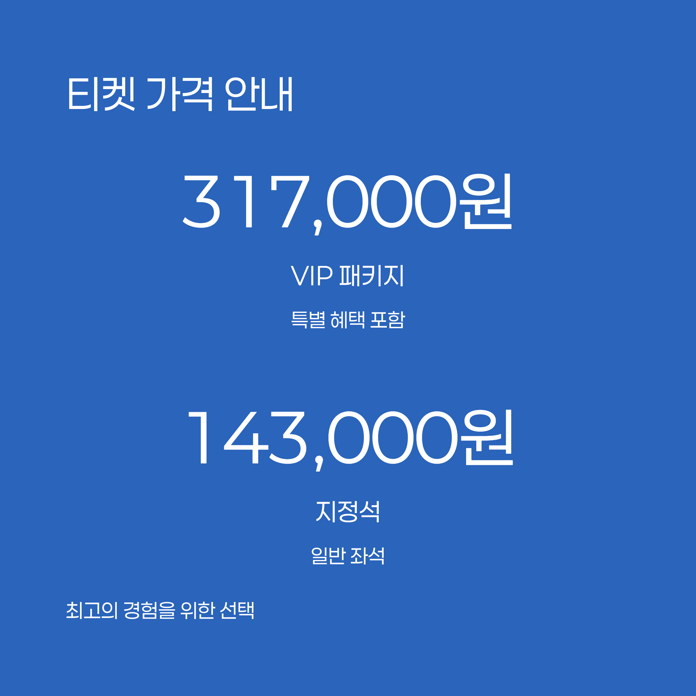 3. 티켓 가격: VIP 317,000원, 지정석 143,000원