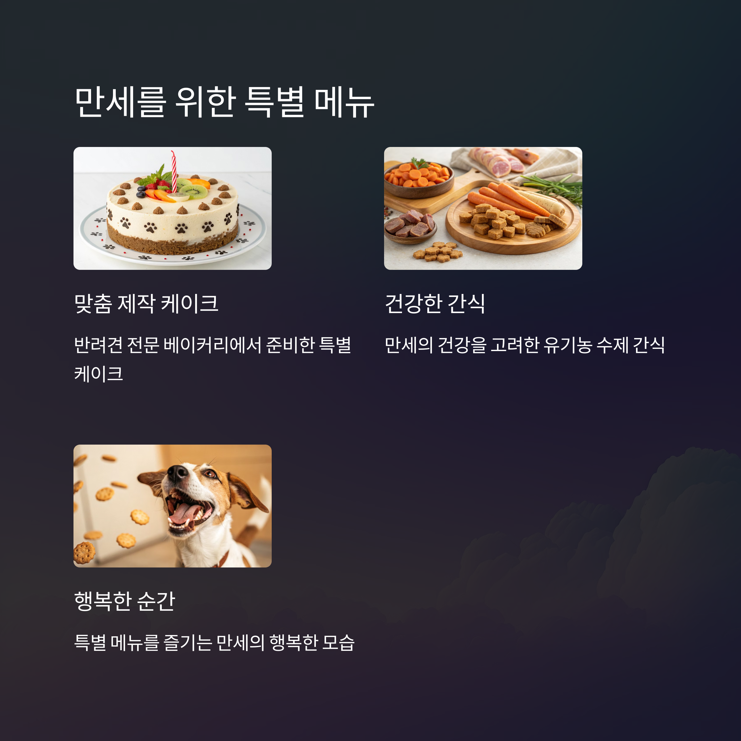 • 만세를 위해 특별 제작된 케이크와 맞춤 간식이 파티의 하이라이트였습니다.