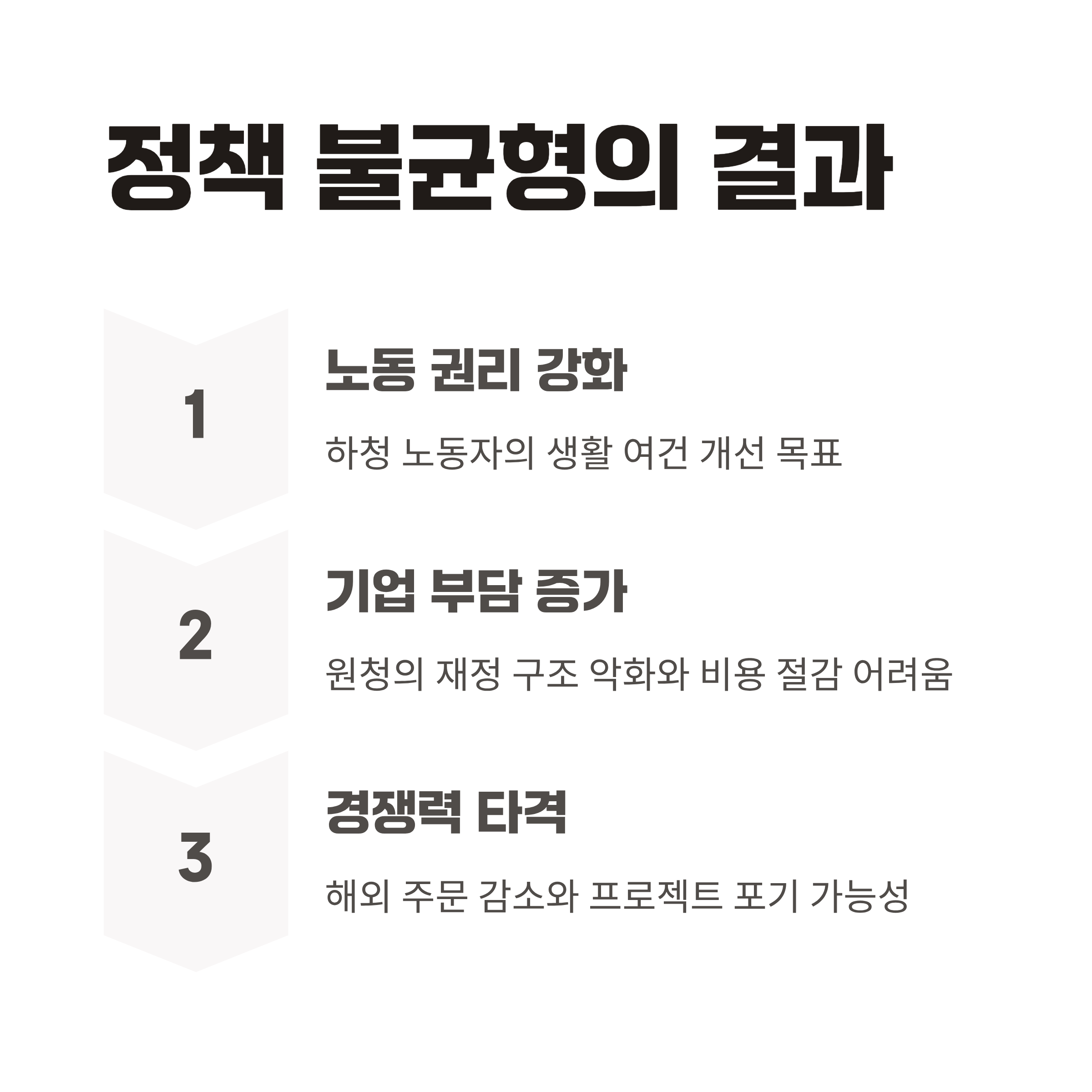 셋째, 노동계의 요구가 지속되며, 원청 기업의 재정적 부담이 심화되고 있습니다.