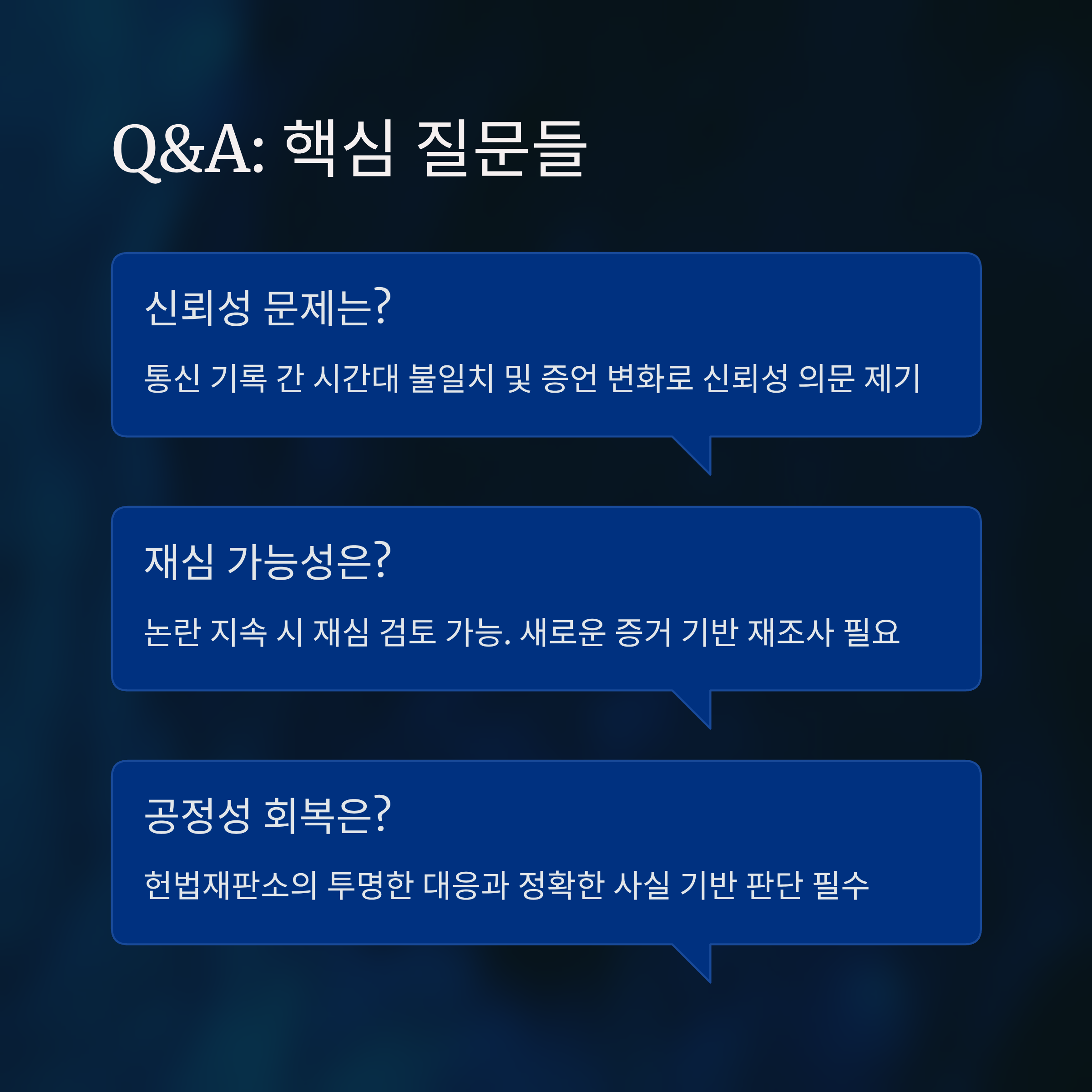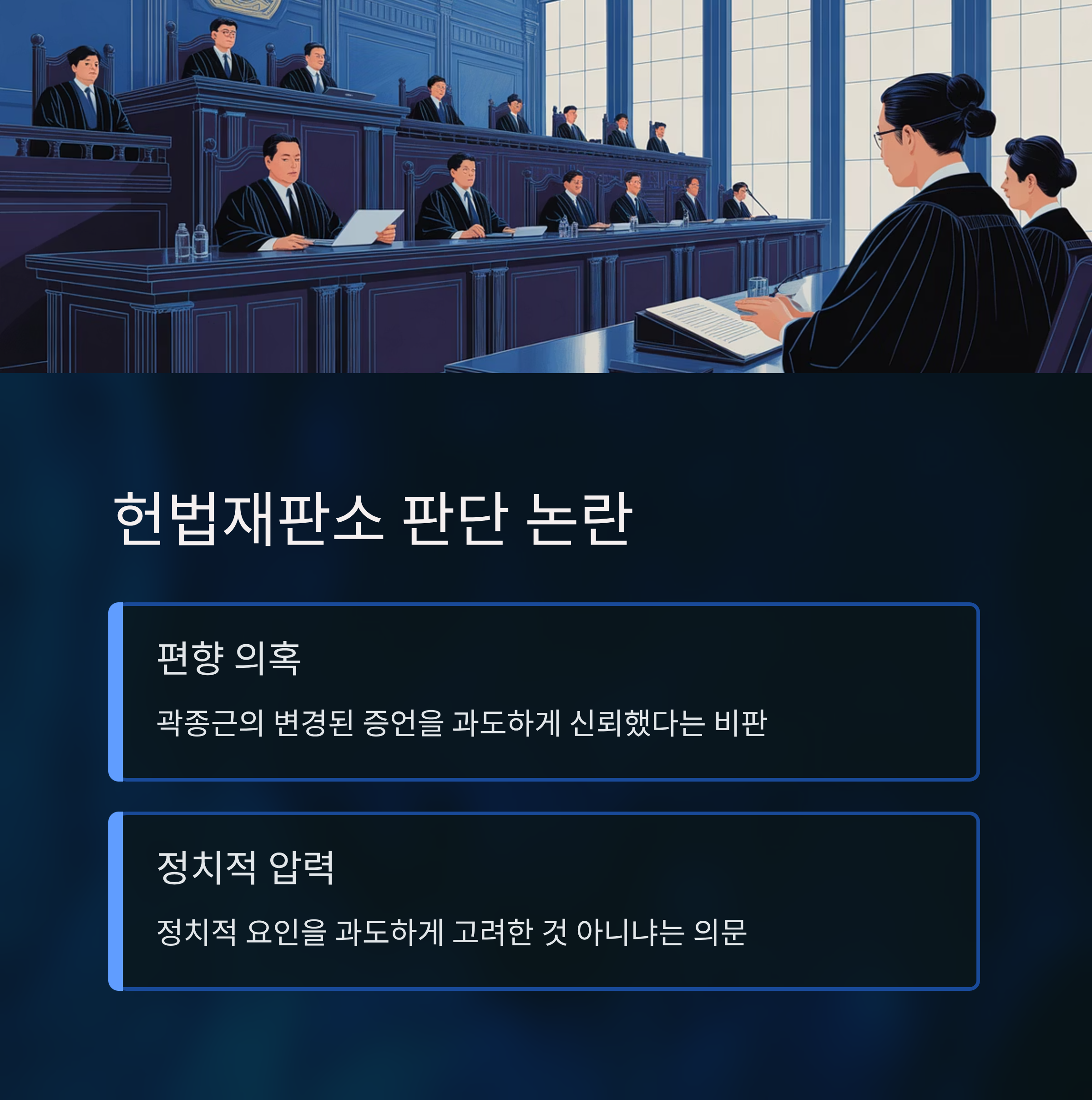 법적 전문가들은 헌법재판소가 곽종근의 "변경된 증언"을 중심에 둔 탄핵 결정을 내렸다는 점을 주목하고 있습니다. 곽종근은 초기 국회 청문회에서 구체적인 지시 사항이 없었다고 했지만, 이후 증언에서 '명확한 지시가 존재했다'는 주장을 강조했습니다. 이러한 증언 변화는 법적 판례를 뒤흔들 수 있는 문제로, 재판의 공정성과 신뢰성에 대한 의문을 제기합니다. 이는 헌법재판소가 정치적 요인을 과도하게 고려한 것 아니냐는 비판으로 이어지고 있습니다.
