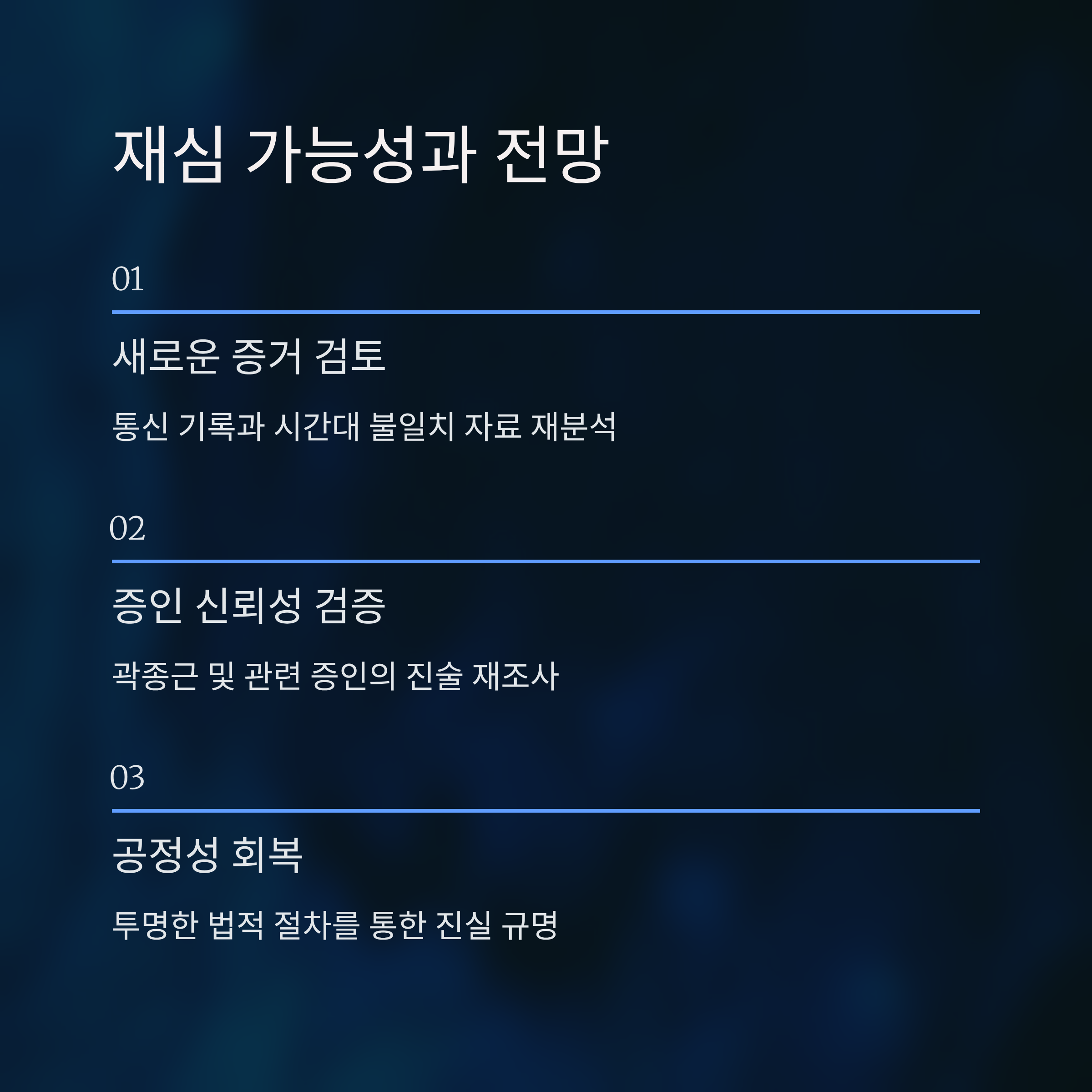 | A. 논란이 계속된다면 윤석열 전 대통령의 재판 결과에 대한 재심이 검토될 수 있으며, 이는 곽종근 및 관련 증인의 신뢰성 검증 과정을 새롭게 포함할 수 있습니다. |