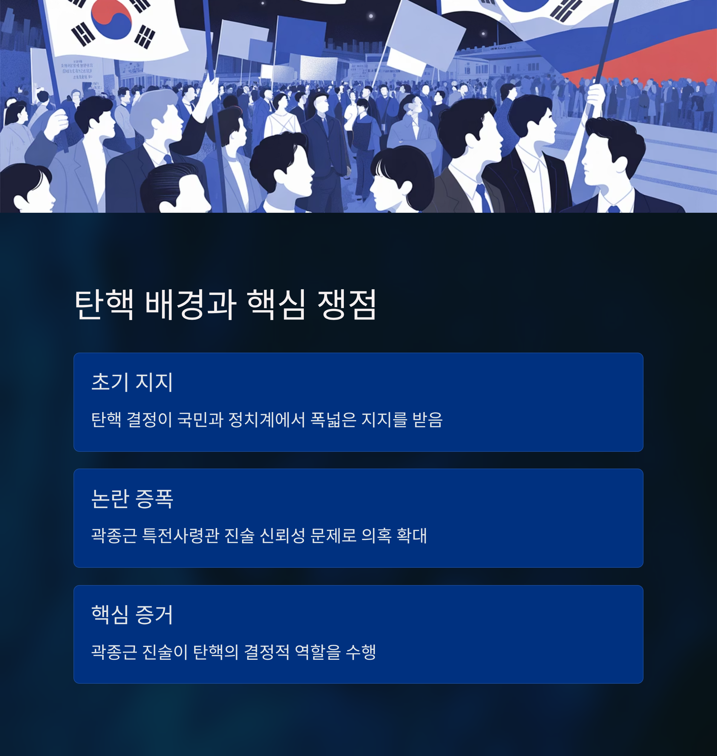 윤석열 전 대통령에 대한 탄핵과 내란죄 재판은 한국 현대 정치사에서 중요한 분기로 기록되고 있습니다. 초기에는 탄핵 결정이 국민과 정치계에서 폭넓은 지지를 받았으나, 시간이 지나며 곽종근 특전사령관의 진술 신뢰성 문제로 인해 논란이 증폭되고 있습니다. 이번 글에서는 윤석열 전 대통령 탄핵 결정의 핵심 증거였던 곽종근 진술의 신뢰성과 그 여파에 대해 집중 조명합니다. 나아가 재판의 공정성 및 진실 규명을 위한 국민의 역할도 논의하고자 합니다.
