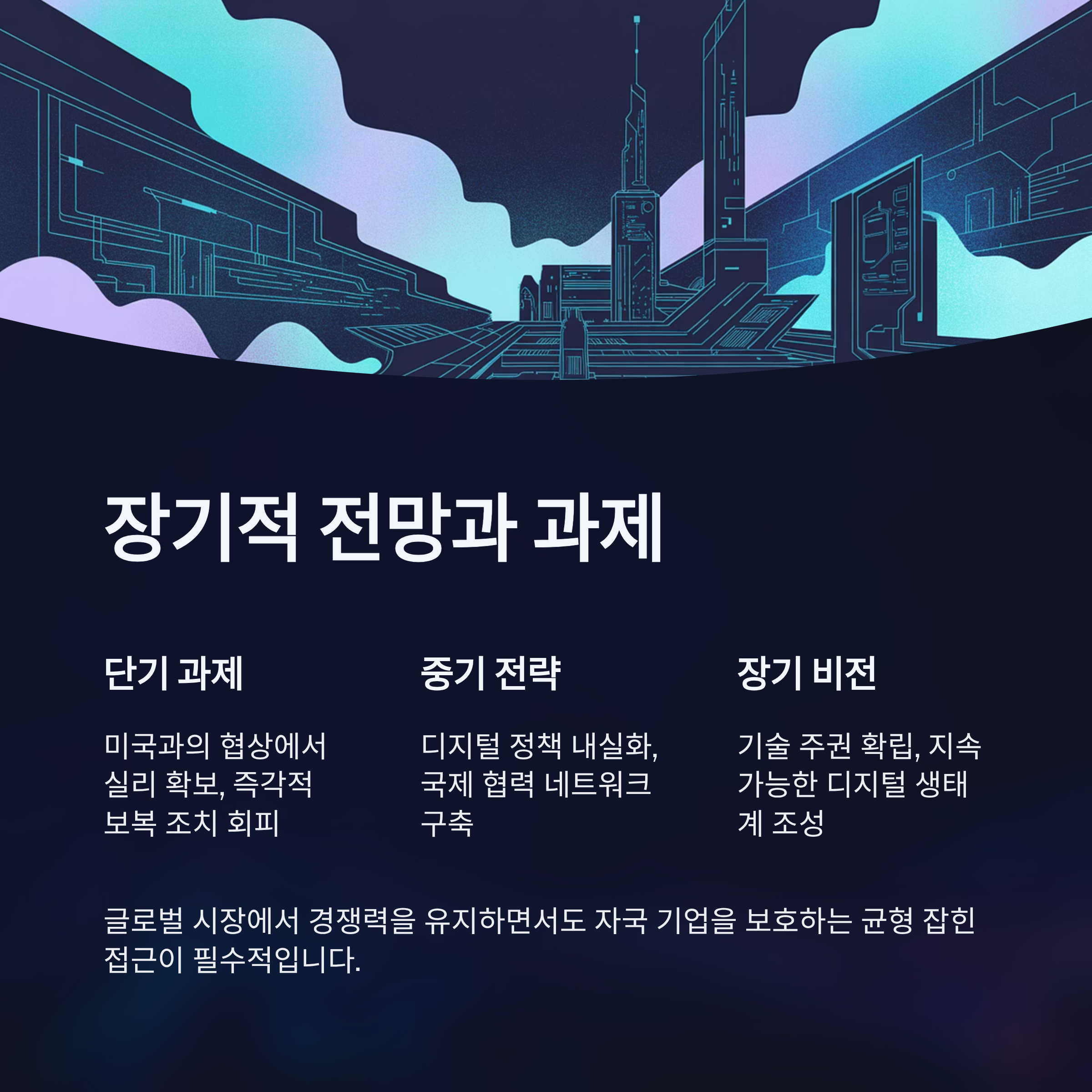 이는 결국 글로벌 시장에서 미국과 다른 주요 강대국과의 협력 모색, 디지털 정책의 내실화, 데이터 주권 강화를 통해 이루어질 수 있습니다. 한미 관계가 단기적 마찰 뒤에도 지속 가능성을 유지할 수 있도록 신중하고 균형 잡힌 협상이 필수적입니다.