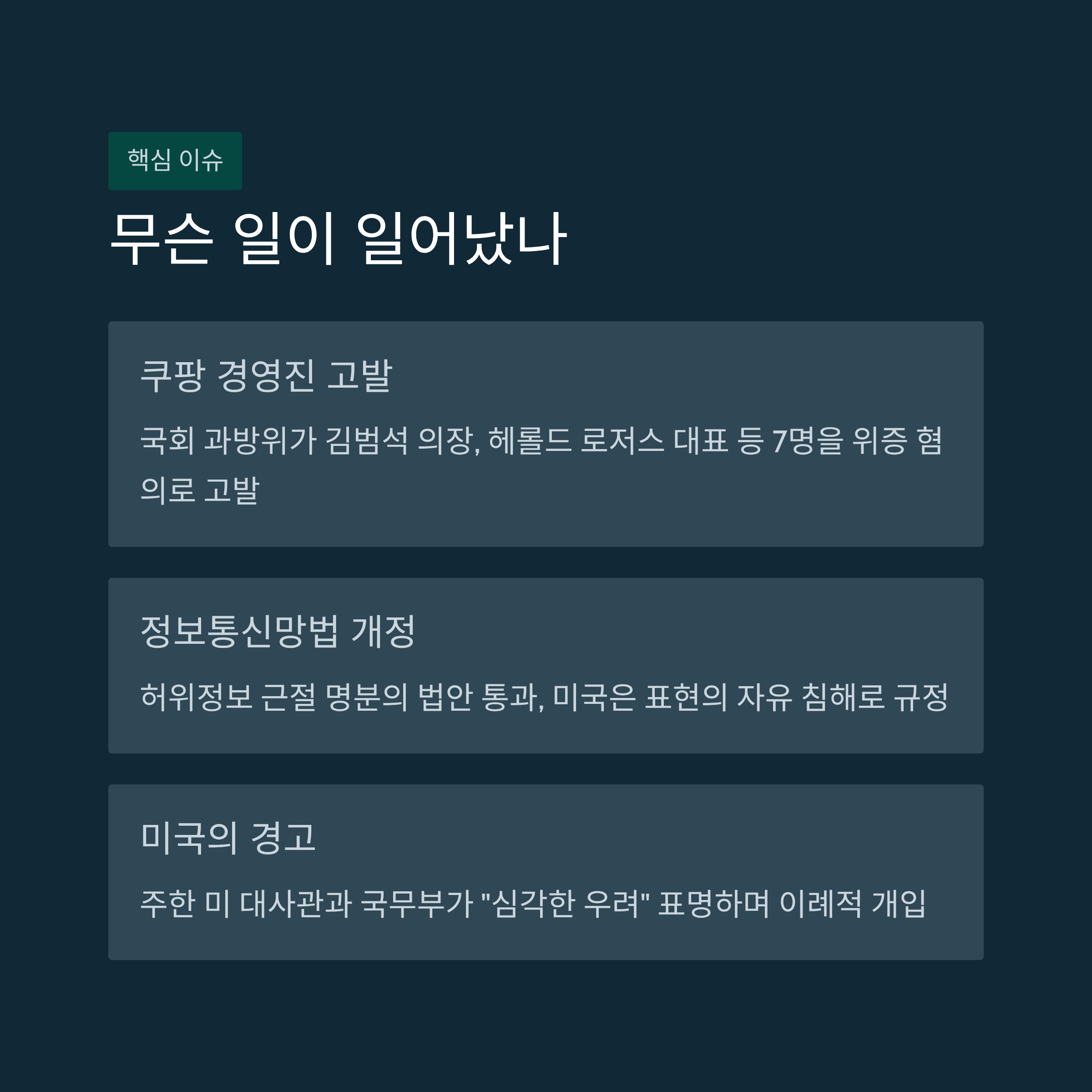 - 2. 핵심요약: 쿠팡 경영진 고발 사태와 정보통신망법 개정에 대한 미국의 경고