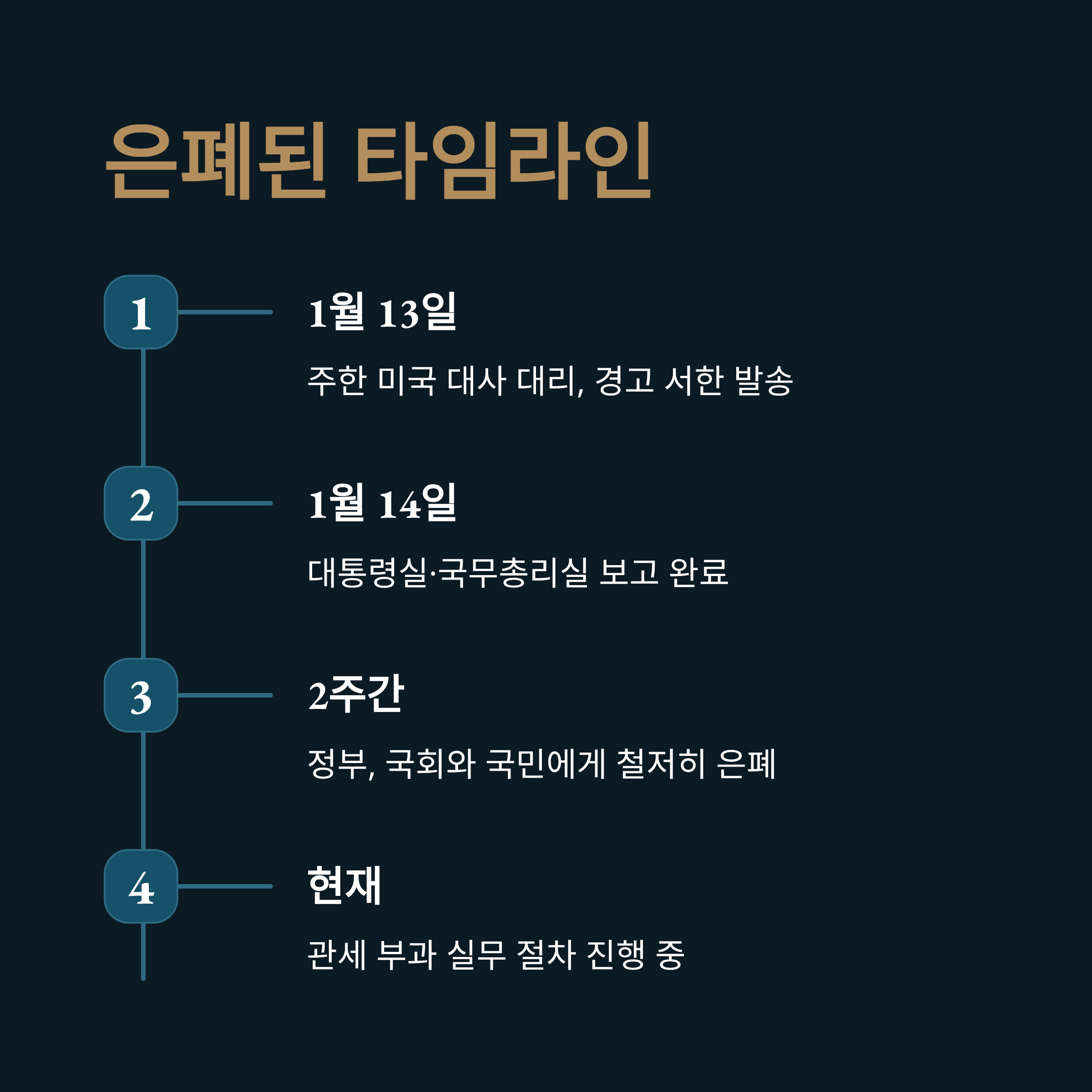 이번 사태가 충격적인 이유는 정부가 위기를 사전에 인지하고도 묵인했다는 점에 있습니다. 주한 미국 대사 대리는 이미 1월 13일, 한국 정부에 공식 서한을 보냈습니다. 서한의 핵심 내용은 "작년 11월 합의한 한미 공동 팩트 시트의 이행이 전혀 진행되지 않고 있으니 신속히 조치하라"는 최후통첩 성격이었습니다. 이 내용은 접수 다음 날인 1월 14일, 대통령실과 국무총리실에 모두 보고되었습니다. 즉, 이재명 대통령은 최소 2주 전부터 사태의 심각성을 파악하고 있었던 것입니다.