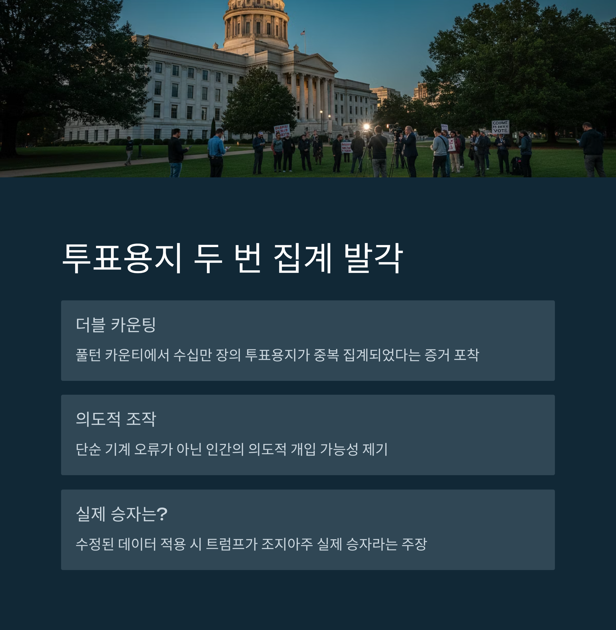“투표용지 두 번 집계로 트럼프 표 훔쳤다”