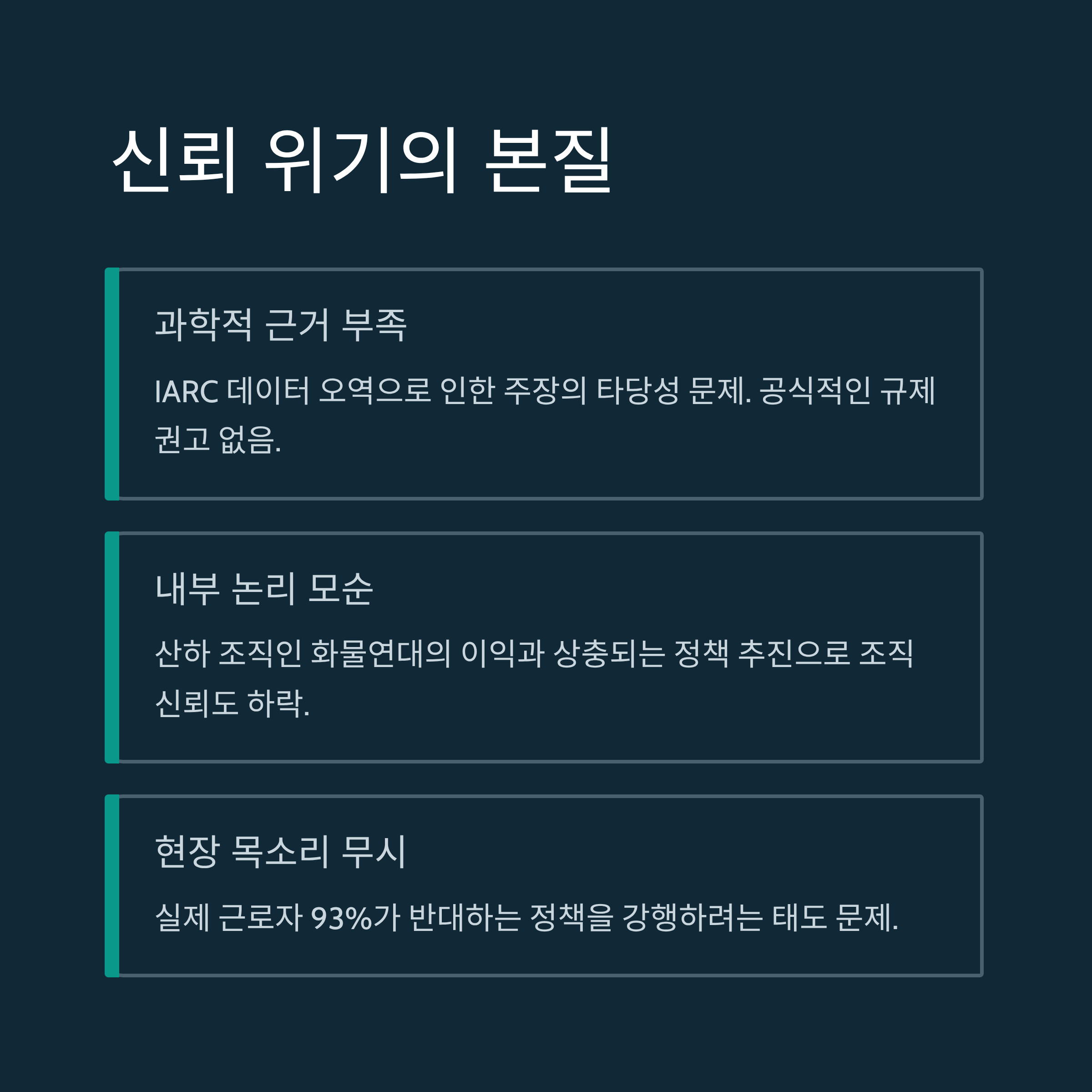 민노총은 야간 노동이 국제암연구소(IARC)에 의해 2급 발암 물질로 분류되었다고 주장하며 이를 주요 근거로 언급했습니다. 그러나 IARC는 실제로 야간 노동 그 자체를 발암 물질로 명시한 적이 없습니다. 이 주장에 사용된 데이터는 과학적 오역의 결과로, 심야 노동과 건강의 상관관계에 대한 일부 연구만 있을 뿐 공식적인 등급 분류나 규제 권고는 나오지 않았습니다. 이로 인해 민노총의 주장은 과학적 타당성에 의문을 제기하며 신뢰 신장을 저해할 수 있습니다.