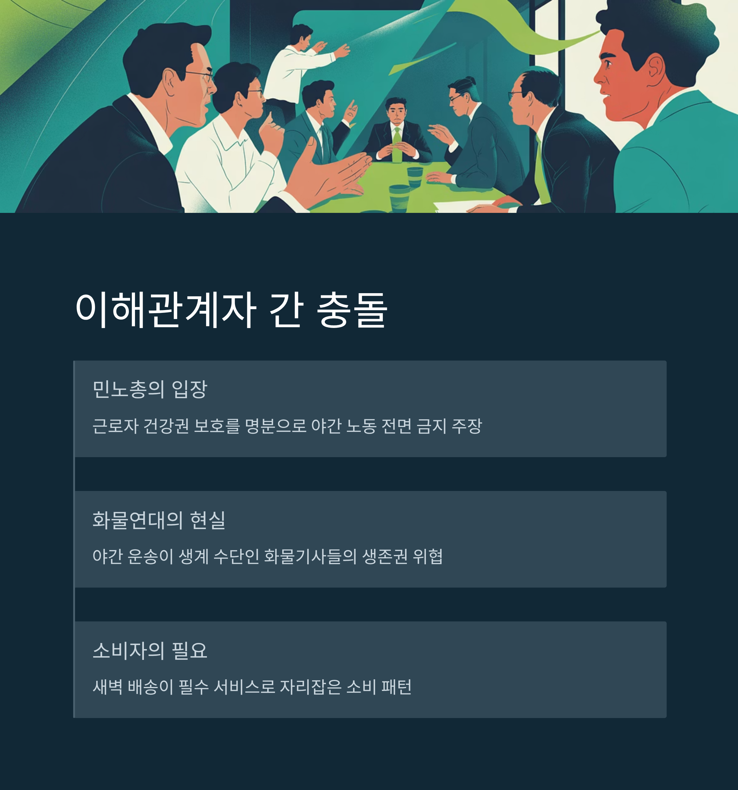 관련 태그: 민노총, 새벽 배송, 야간 노동, 화물연대, 경제 영향, 노동 시장, IARC, 논란, 정책 분석