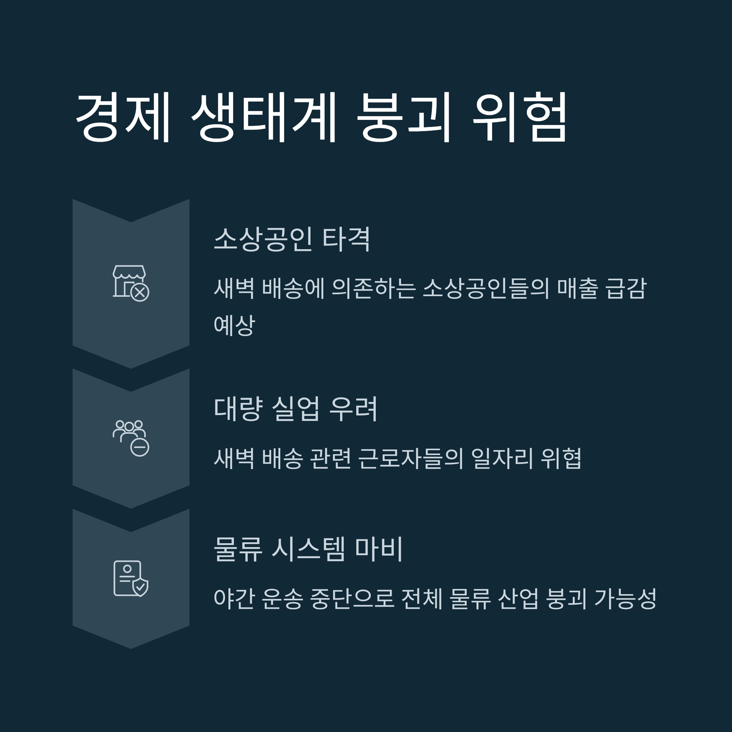 - 새벽 배송 근로자의 93%가 해당 주장에 반대하며, 대다수가 생계 위협을 느끼고 있음.