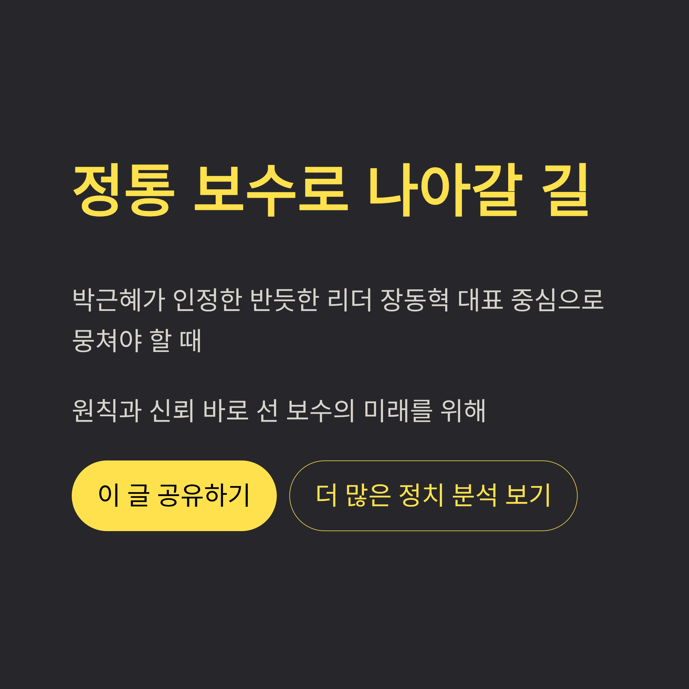 - 4. 결론: 배신의 정치를 끝내고 정통 보수로 나아갈 길