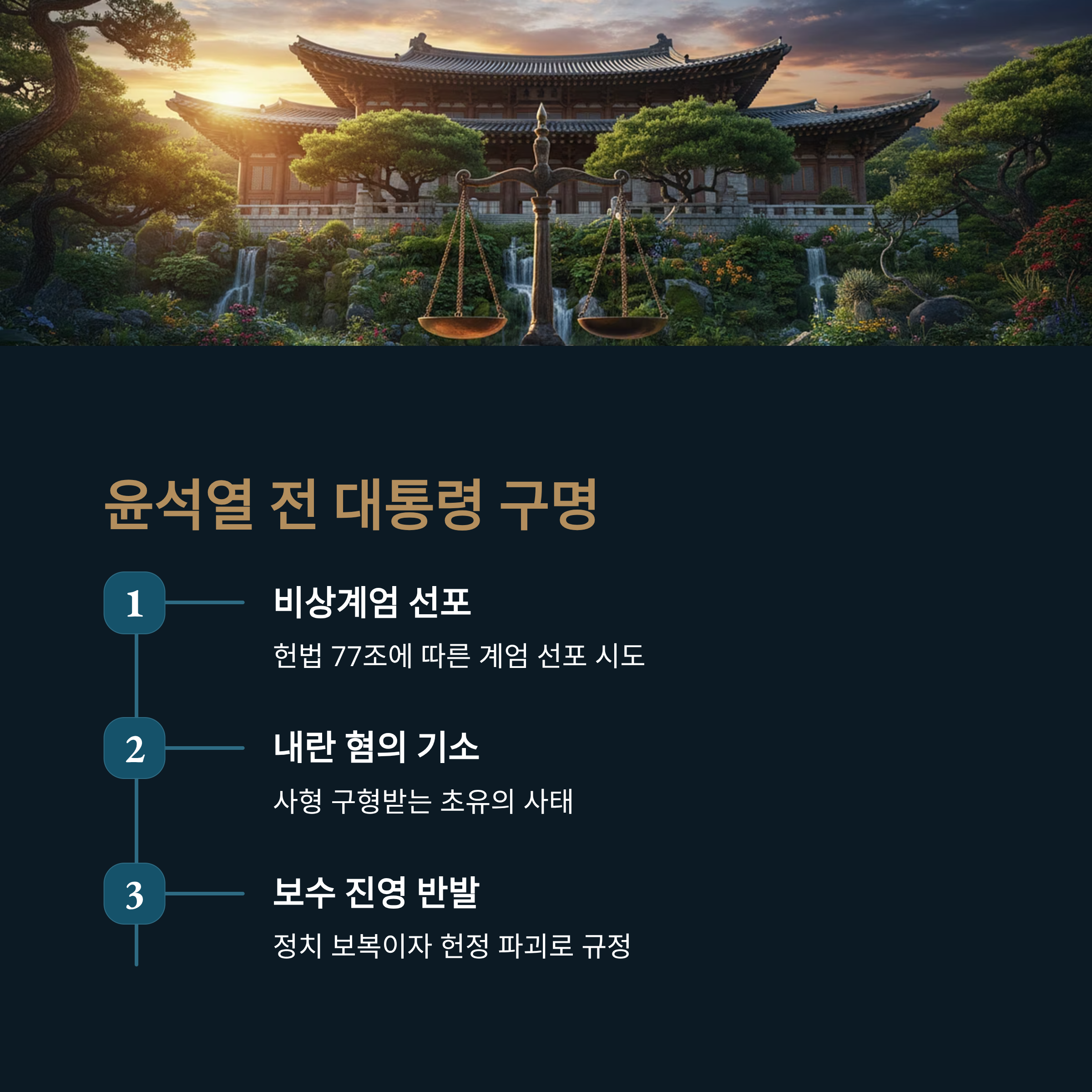 | A3. 윤석열 전 대통령은 재임 중 비상계엄을 선포했다가 현재 내란 혐의로 재판을 받고 있으며 사형이 구형된 위기 상황입니다. 보수 진영은 이를 이재명 정권의 정치 보복이자 헌정 파괴로 규정하고 강력하게 반발하고 있습니다. |