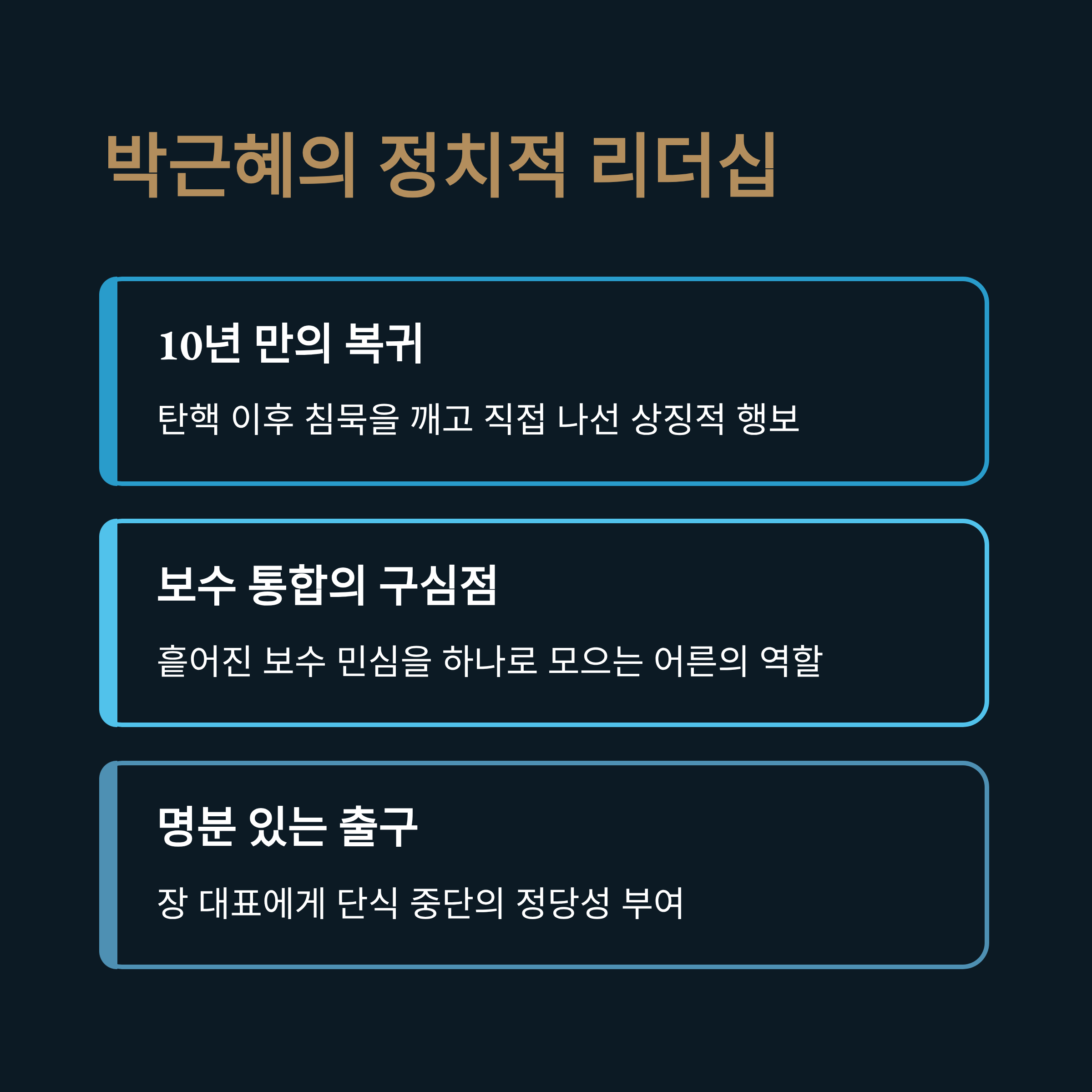 - 3. 분석: 박근혜의 정치적 행보, 진정성 있는 단식 투쟁, 그리고 윤석열 전 대통령 구명론