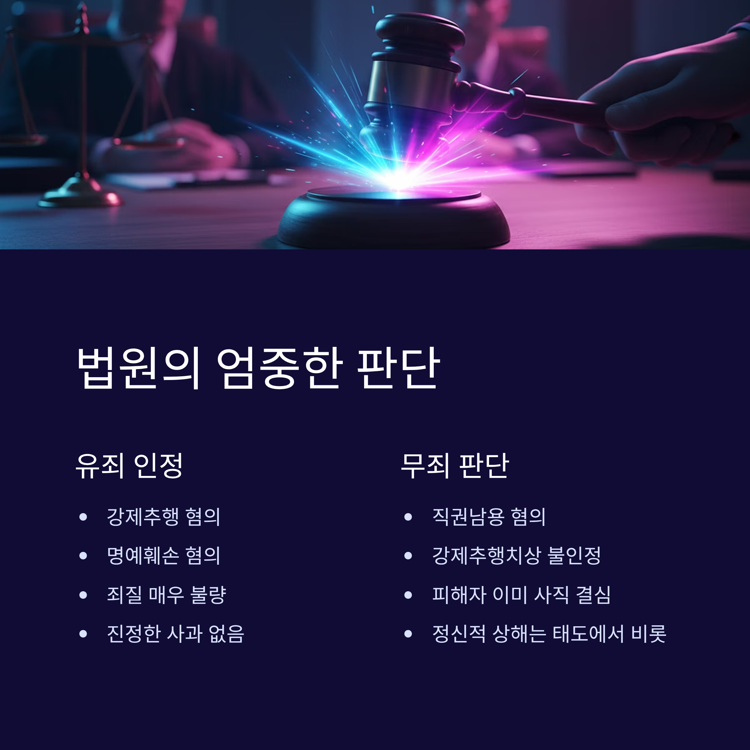 법원은 이처럼 깊은 신뢰 관계에 있던 부하 직원을 상대로 한 범죄라는 점에서 죄질이 매우 불량하다고 판단했습니다.