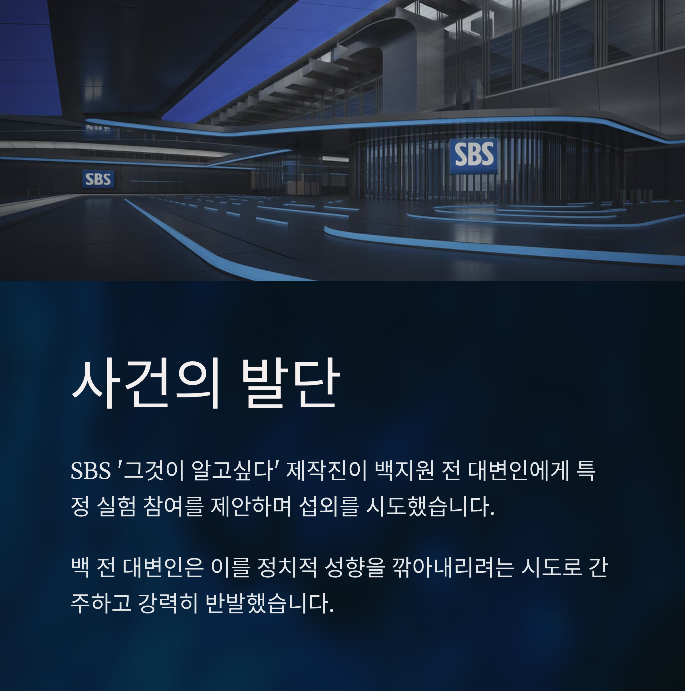 최근 SBS '그것이 알고싶다' 제작진이 국민의힘 백지원 전 대변인을 대상으로 특정 실험을 염두에 둔 프로그램 섭외를 시도했다고 알려진 일이 큰 논란을 일으켰습니다. 백 전 대변인은 이를 자신의 정치적 성향을 깎아내리기 위한 행위로 간주하며, 강력한 불만을 표명했습니다. 이 사건은 단순히 한 대변인의 개인적 불쾌감을 넘어, 언론의 역할과 윤리 문제, 또 정치 성향 간 갈등을 조명하는 중심에 섰습니다. 이 글에서는 사건의 쟁점과 각 이해 관계자의 입장을 비교하며, 사회적 의미와 향후 과제를 살펴봅니다. 특히 왜 이 사건이 폭발적인 관심을 받았는지, 의도치 않은 결과까지도 검토해 보겠습니다.