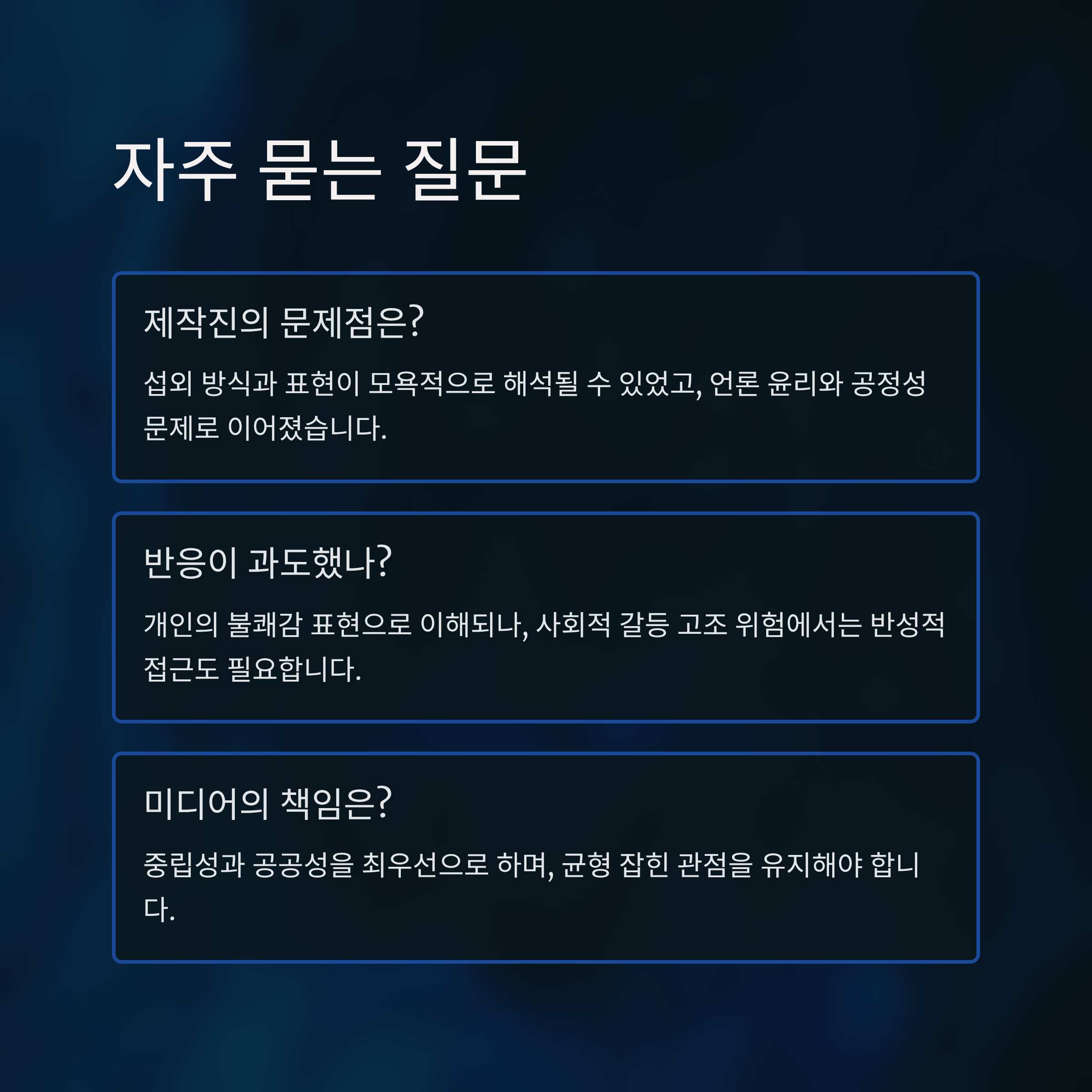 4. 이번 사건은 정치적 갈등이 첨예화된 사회 속에서 언론의 역할에 대한 반성을 촉구하는 계기를 제공했습니다.