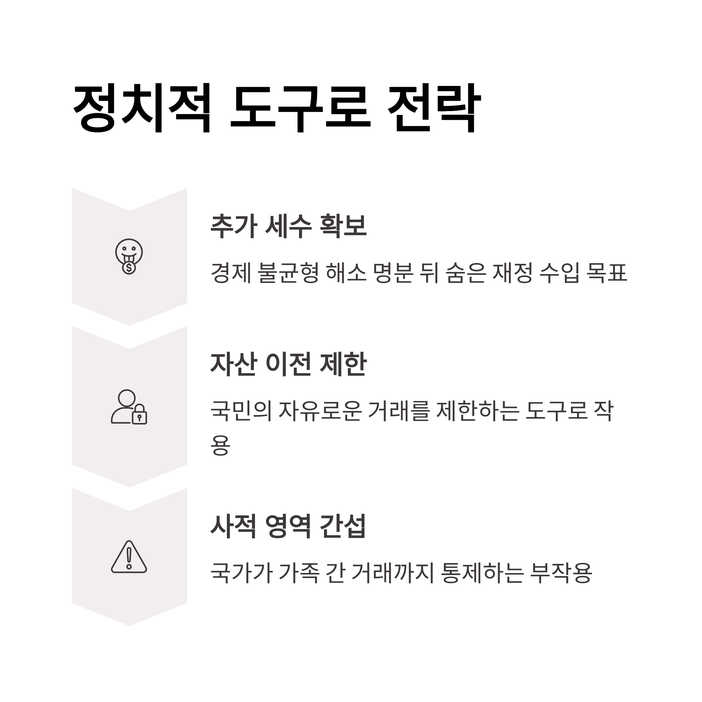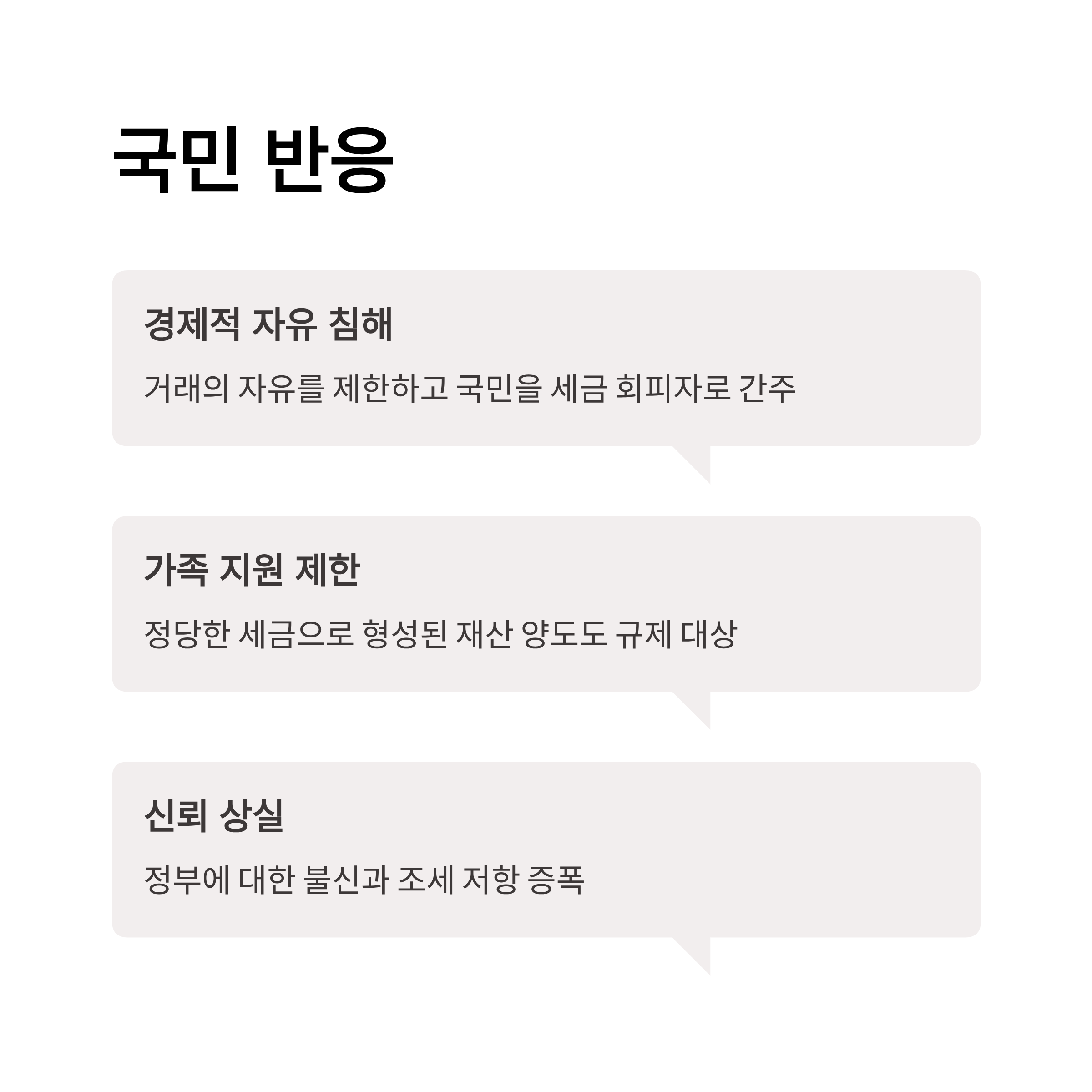 4. 경제적 자유 침해: 정책은 거래의 자유를 제한하고 국민을 세금 회피자로 간주.