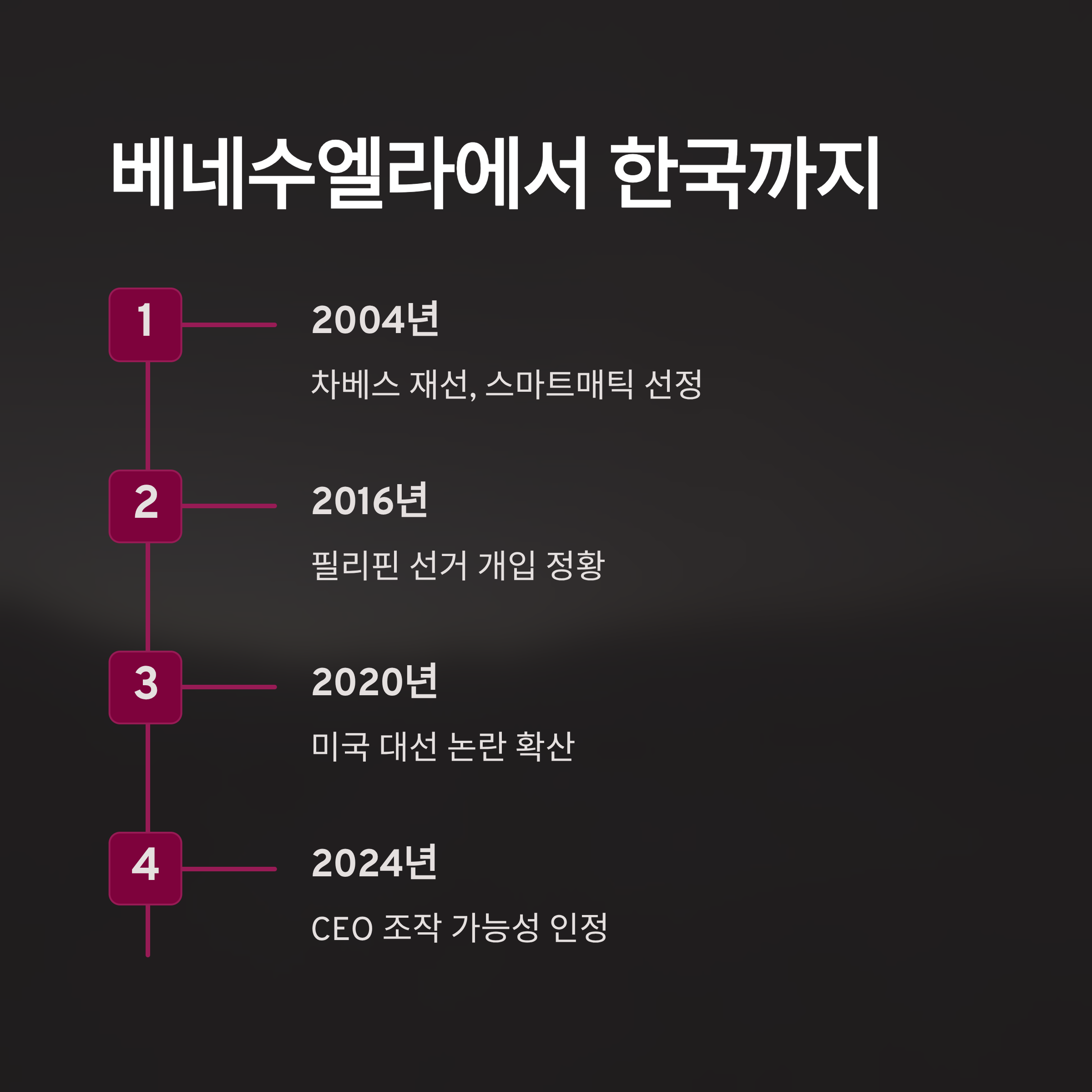 | 스마트매틱 | CEO가 선거 조작 가능성 및 베네수엘라 부정선거 인정 | 베네수엘라, 미국 등 |