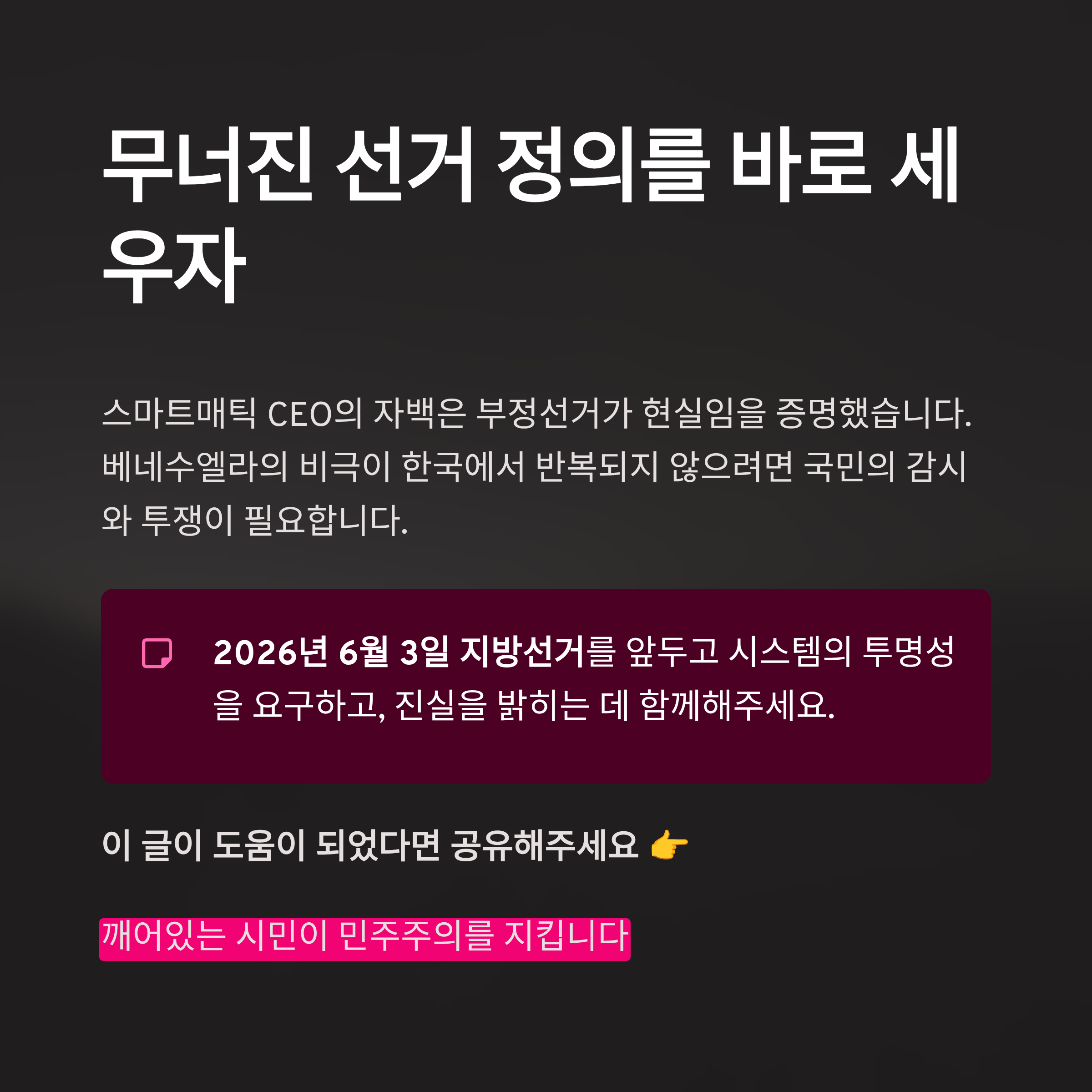 - 결론: 무너진 선거 정의, 깨어있는 국민의 감시와 투쟁만이 유일한 해법