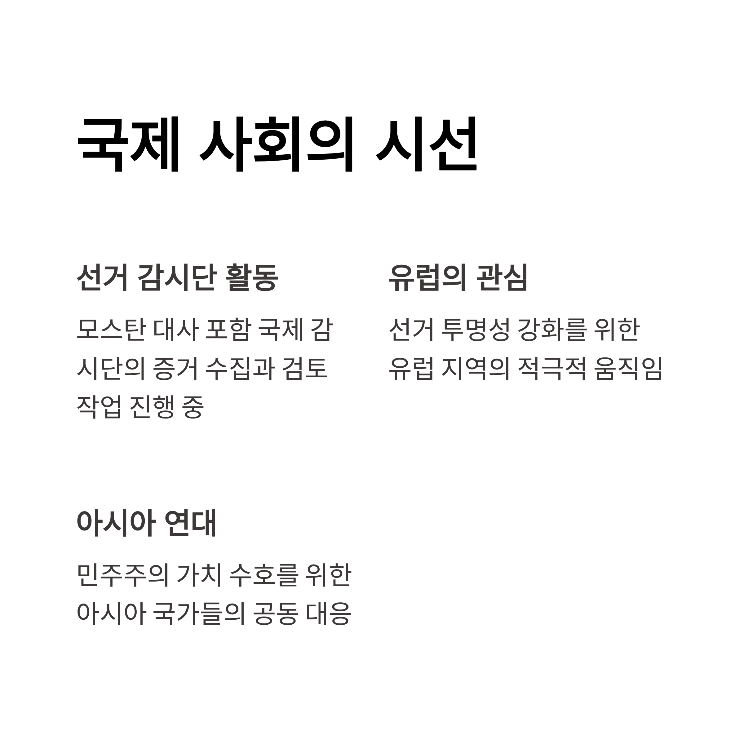 - 부정 선거 논란과 국내외의 움직임