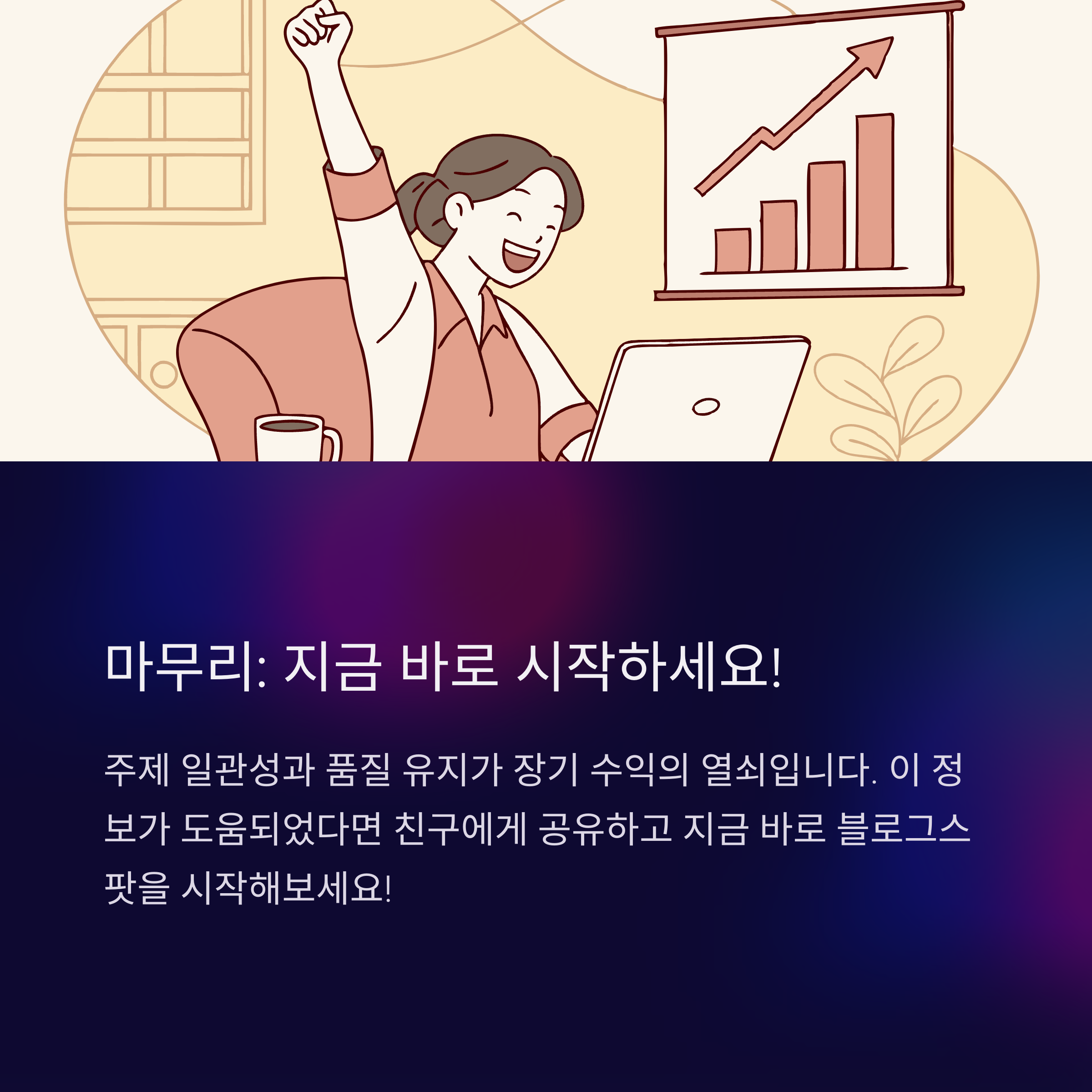최종적으로 블로그 운영 성공의 핵심은 지속적인 관심과 창의적인 도전입니다. 독창적인 콘텐츠와 효율적인 수익화 전략을 결합하면 블로그스팟은 단순한 개인 기록의 공간이 아닌, 안정적인 부가 수입원을 제공할 수 있는 중요한 플랫폼이 될 수 있습니다.