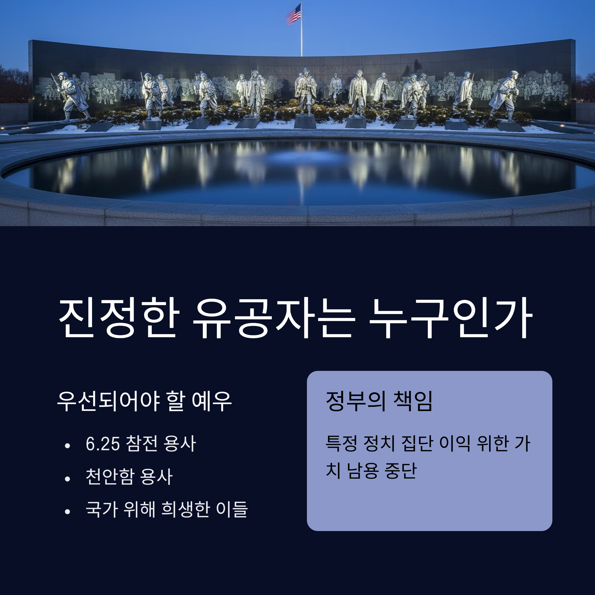 이번 '비상계엄 위원회' 설치는 국민 통합보다는 분열을 조장하고, 과거의 사건을 현재의 정치적 동력으로 삼으려는 의도가 명백해 보입니다. 2년 전의 사건은 이미 관련자들에 대한 사법 절차가 진행 중이며, 대다수 국민은 이를 극복하고 미래로 나아가기를 원하고 있습니다. 국가 유공자 예우는 6.25 참전 용사나 천안함 용사들처럼 국가를 위해 목숨을 바치거나 명백한 희생을 치른 이들에게 우선되어야 하며, 특정 정치 집단의 이익을 위해 그 가치가 남용되어서는 안 됩니다. 이재명 정부는 과거에 매몰된 '갈라치기' 정치를 멈추고, 만약 위원회 설치를 강행한다면 선정된 유공자의 명단과 구체적 공적(당일 행적)을 낱낱이 공개하여 국민의 엄정한 검증을 받아야 할 것입니다. 역사의 평가는 위원회가 만드는 것이 아니라, 후대가 내리는 것임을 명심해야 합니다.