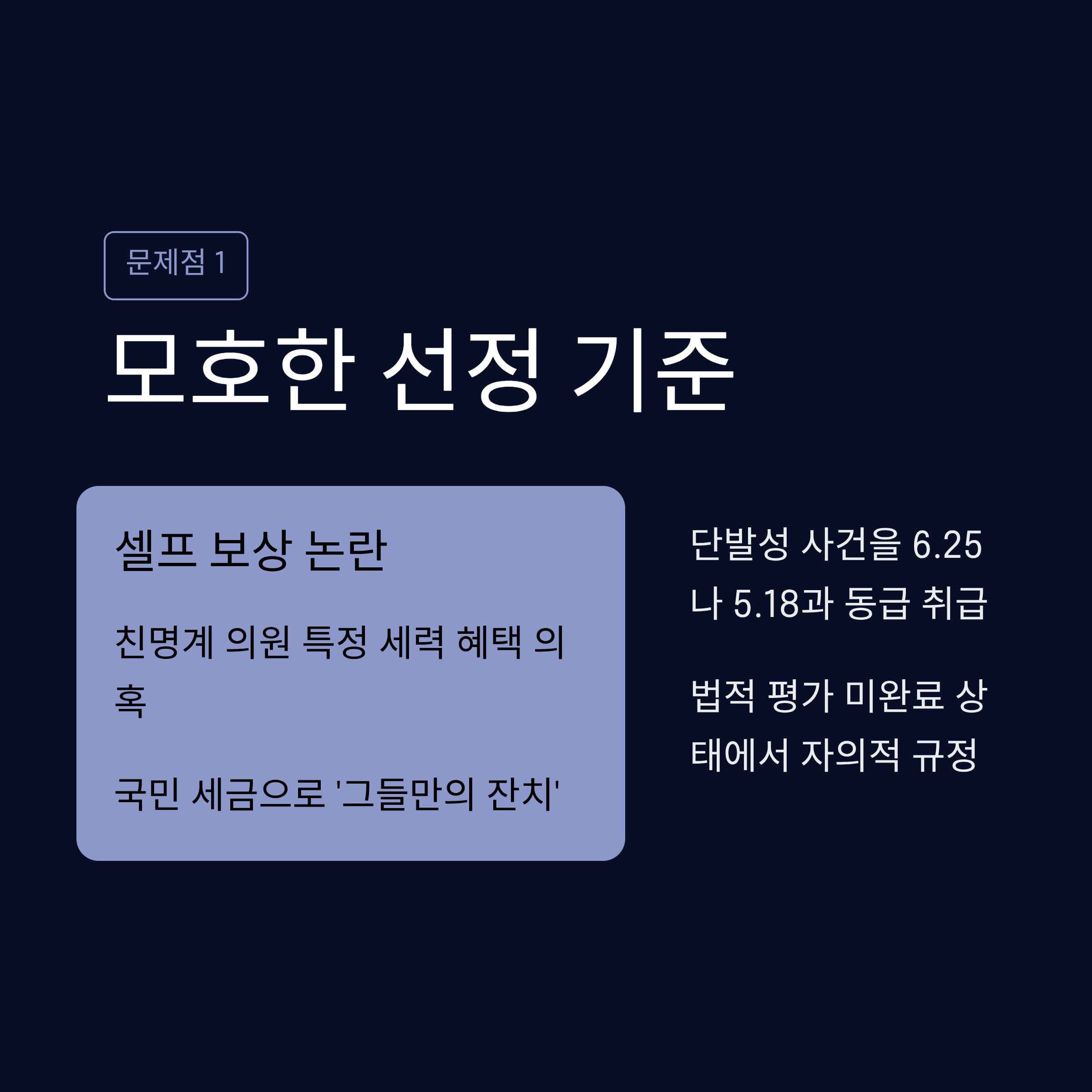 - 모호한 선정 기준, 행정력 낭비, 정치적 프레임 전략에 대한 심층 분석