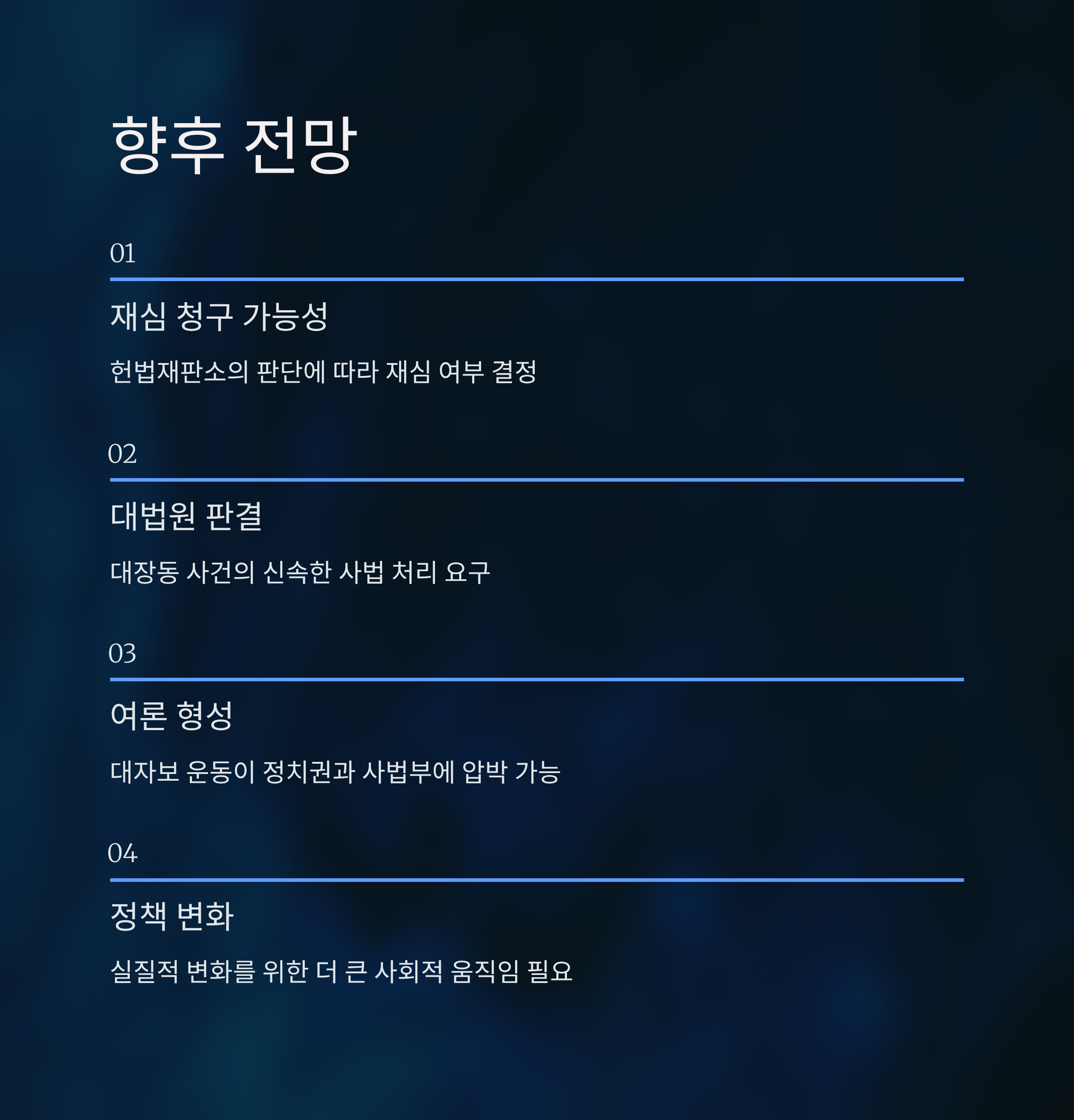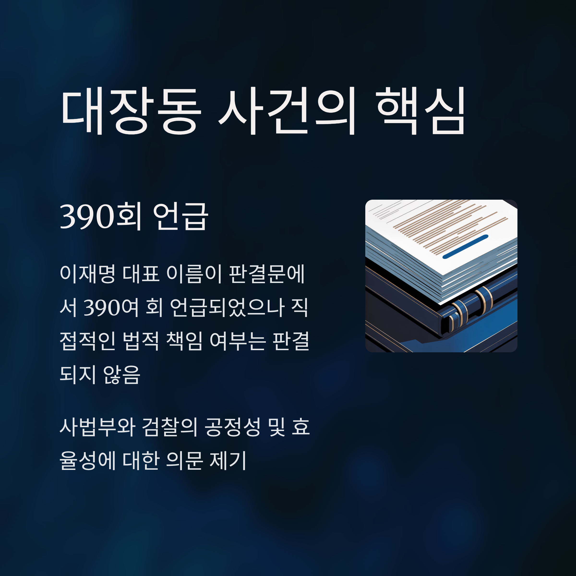 대장동 사건은 현재 한국 사회의 최대 정치적, 법적 파문을 일으킨 사건 중 하나로 꼽힙니다. 서울대 트루스 포럼은 이재명 더불어민주당 대표의 관여 가능성을 공개적으로 문제 삼으며, 재판이 지나치게 지연되고 있다고 지적했습니다. 이는 사법부와 검찰의 공정성 및 효율성을 의심하게 만드는 요인으로 작용하고 있습니다.