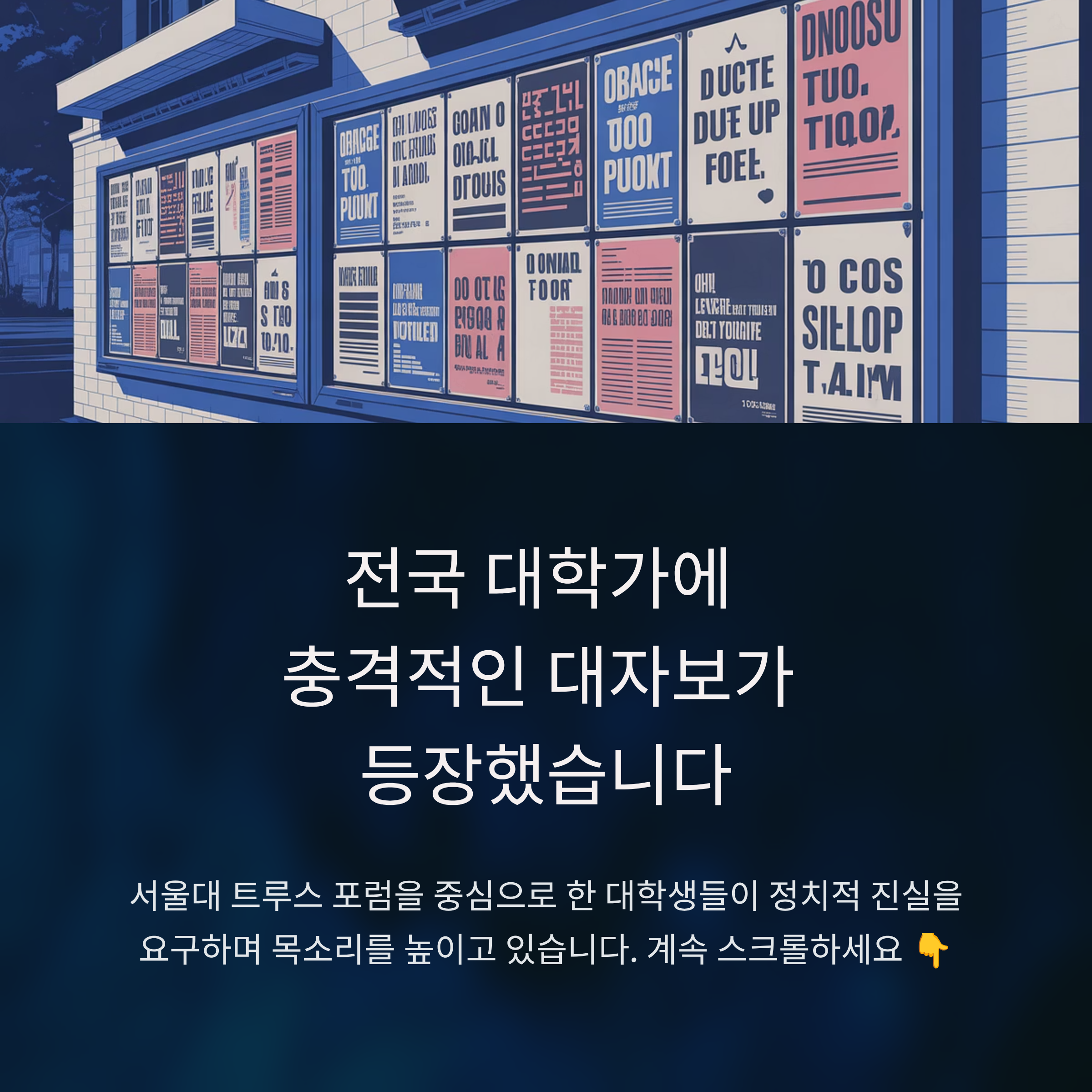 현재 서울대와 중대 지하철, 주요 건물 벽에 게재된 각종 글들은 이 모든 주장을 명확히 담았으며, 그 정치적 메시지와 사실 관계에 대한 논의는 앞으로 더 많은 심층 분석이 필요할 전망입니다.