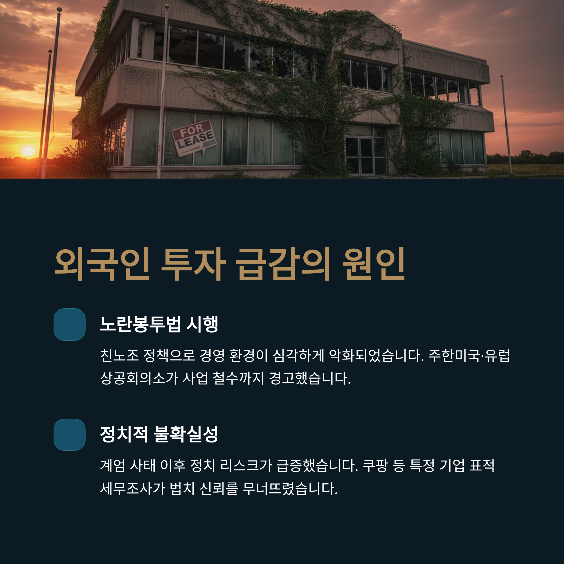 - 분석 2: 외국인 투자 급감, 노동법과 정치 리스크의 콜라보