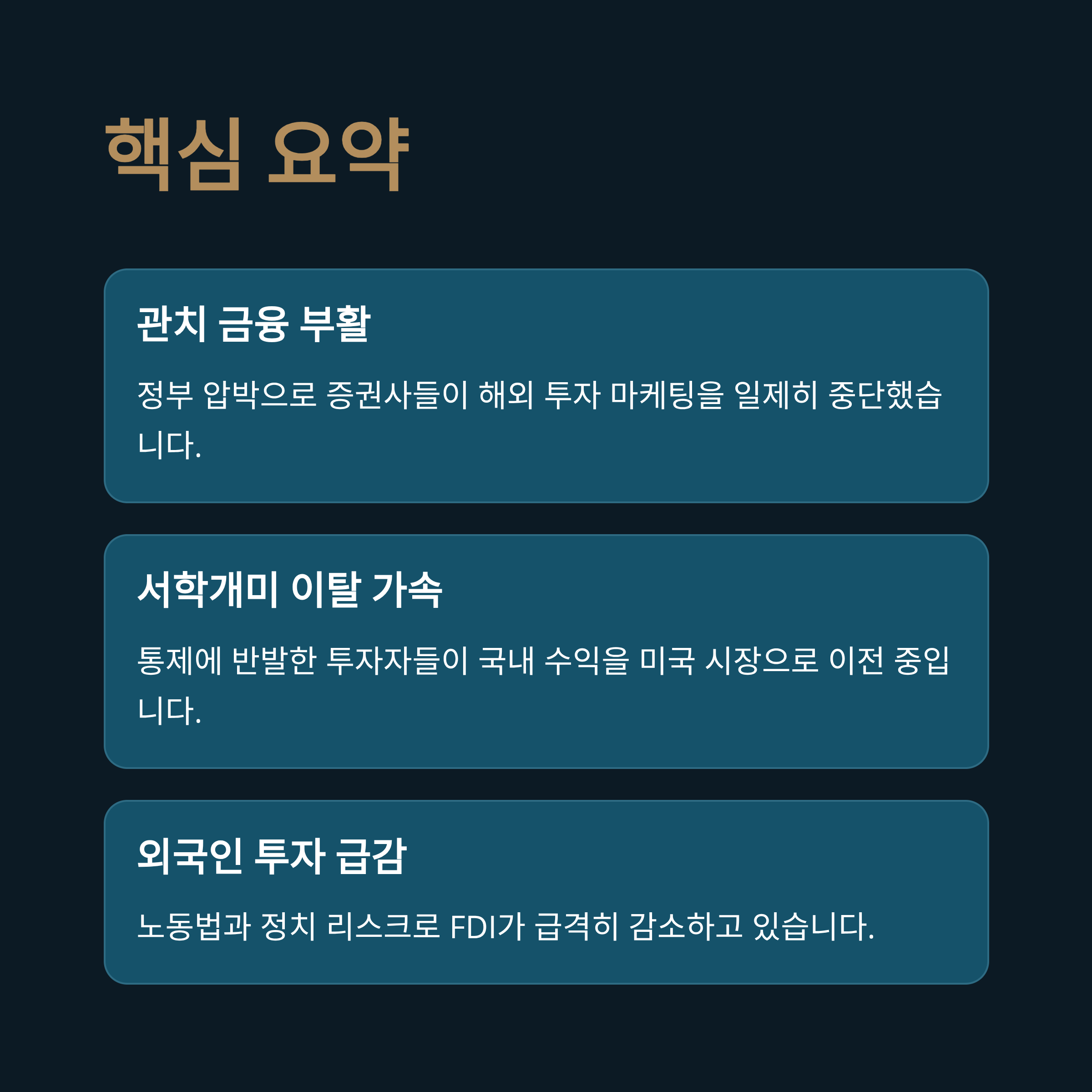 - 분석 1: 관치 금융의 부활, 증권사 압박과 서학개미의 이탈
