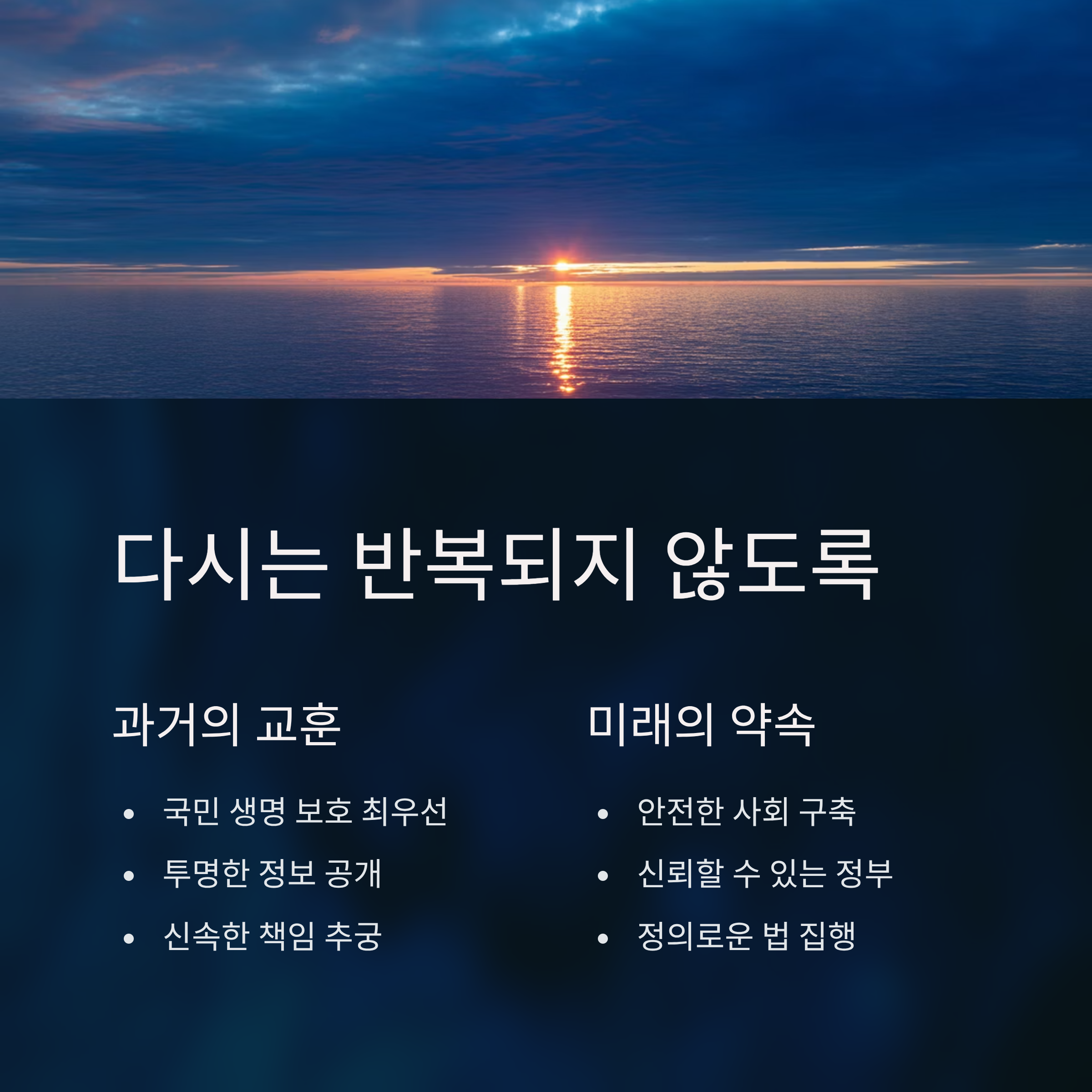 국민의 지속적인 관심과 비판적인 사고, 시민 사회의 철저한 감시는 다시는 이러한 일이 반복되지 않도록 중요한 역할을 수행해야 합니다. 그렇다면 언제, 어디서든 발생할 수 있는 위기 상황에서 국민의 안전과 생명을 보장받을 믿음직한 체제를 확립할 수 있을 것입니다. 서해 피격 사건은 비단 과거의 이야기가 아니라, 우리가 직면한 현재와 미래의 문제입니다. 진실 규명과 책임 추궁을 통해 정의를 바로세우는 것은 우리 모두의 책임입니다.