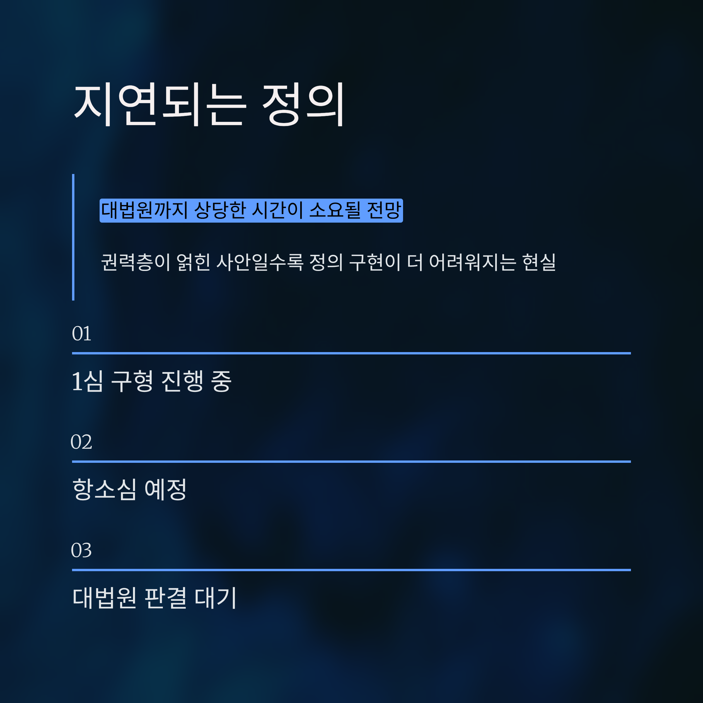 4. 사법적 지연: 대법까지 상당한 시간이 소요될 전망.