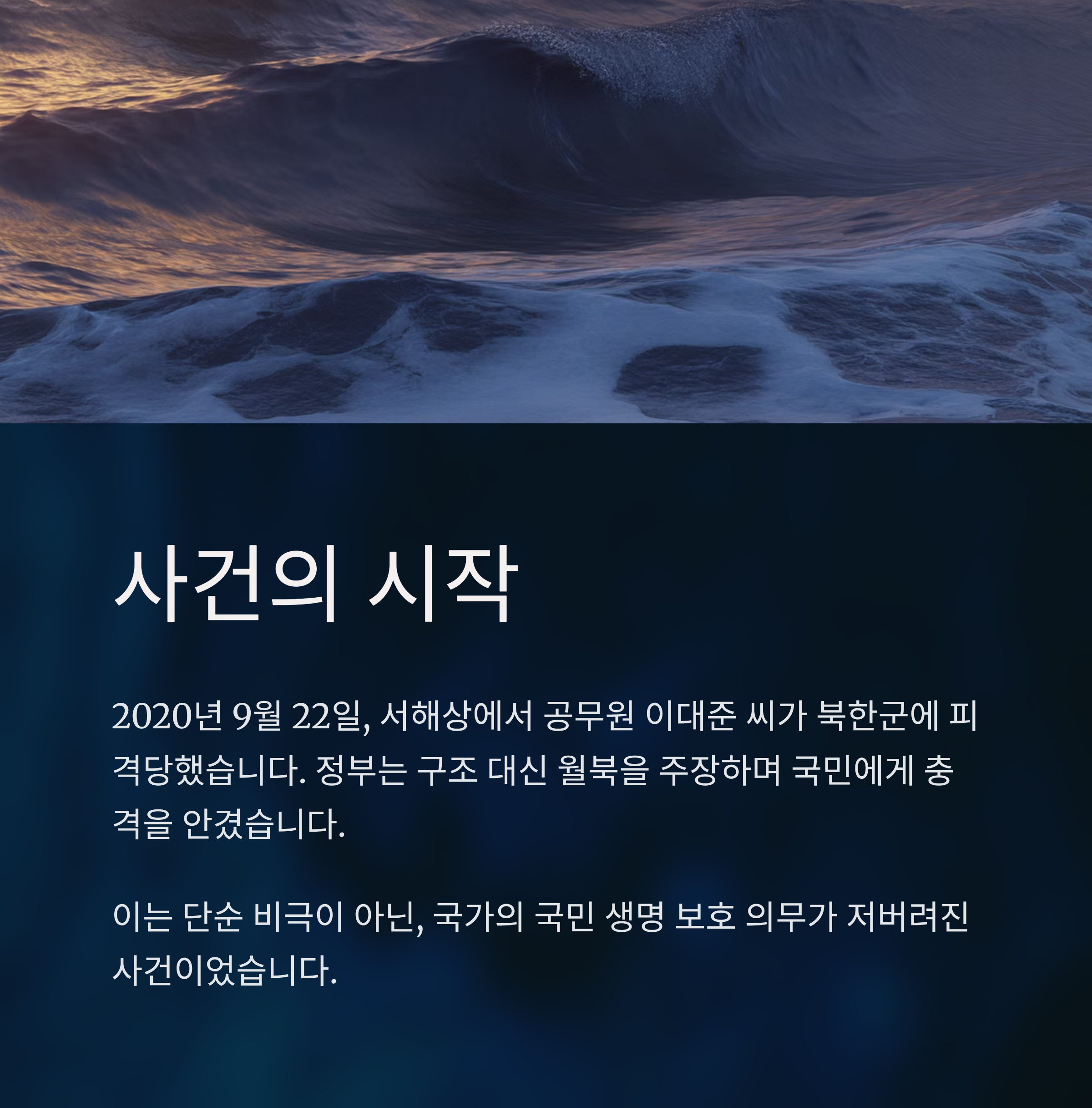 서해 피격 사건은 단순히 정부가 국민 한 명을 구조하지 못했다는 점뿐만 아니라, 책임 회피와 진실 은폐라는 행정 운영의 구조적 문제를 드러낸 사례입니다. 이는 대한민국이 국제사회에서 독재적 체제로 비춰질 수 있는 위험 요소를 내포하고 있으며, 국민 통합과 상호 신뢰를 저해합니다. 이제 우리 사회는 이러한 사건을 단순한 문제로 여기지 말고, 관련 책임자에 대한 법적·도덕적 심판을 성실히 진행해야 합니다.