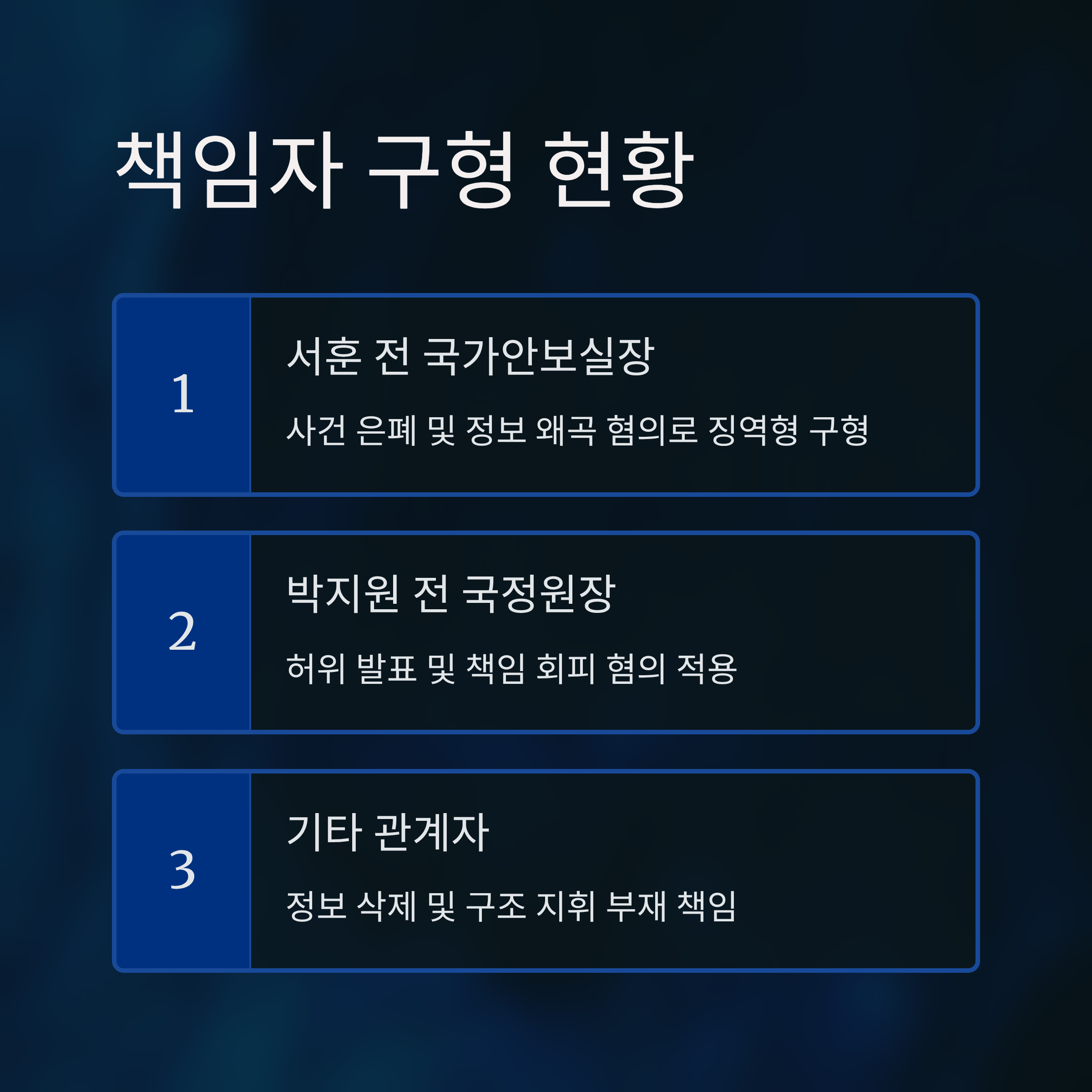 2. 검찰 진행 상황: 서훈, 박지원 등 주요 인물 각기 징역형 구형.