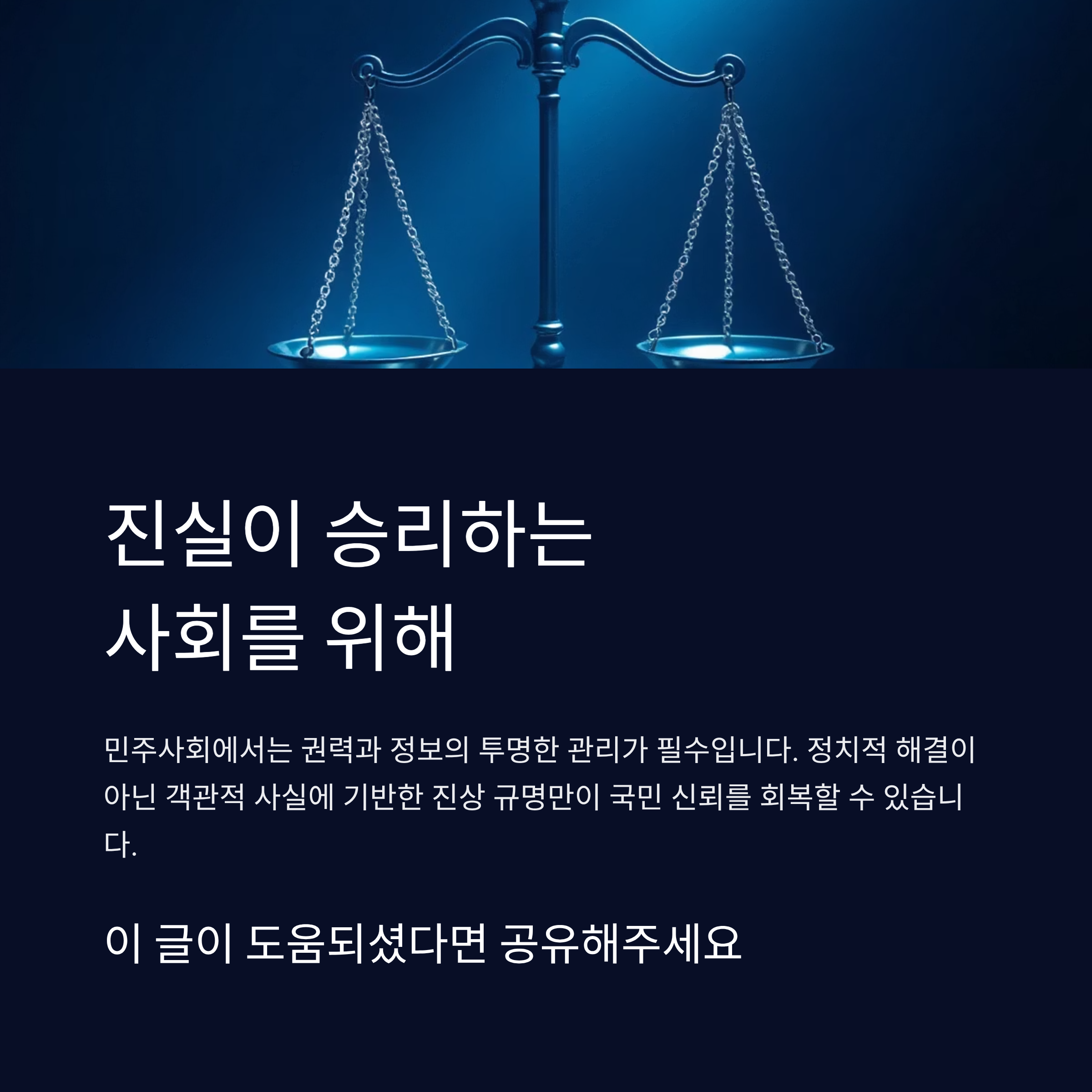 - 민주적 가치를 지키기 위한 냉철한 진상 규명과 언론의 중립적 역할이 중요해졌습니다.