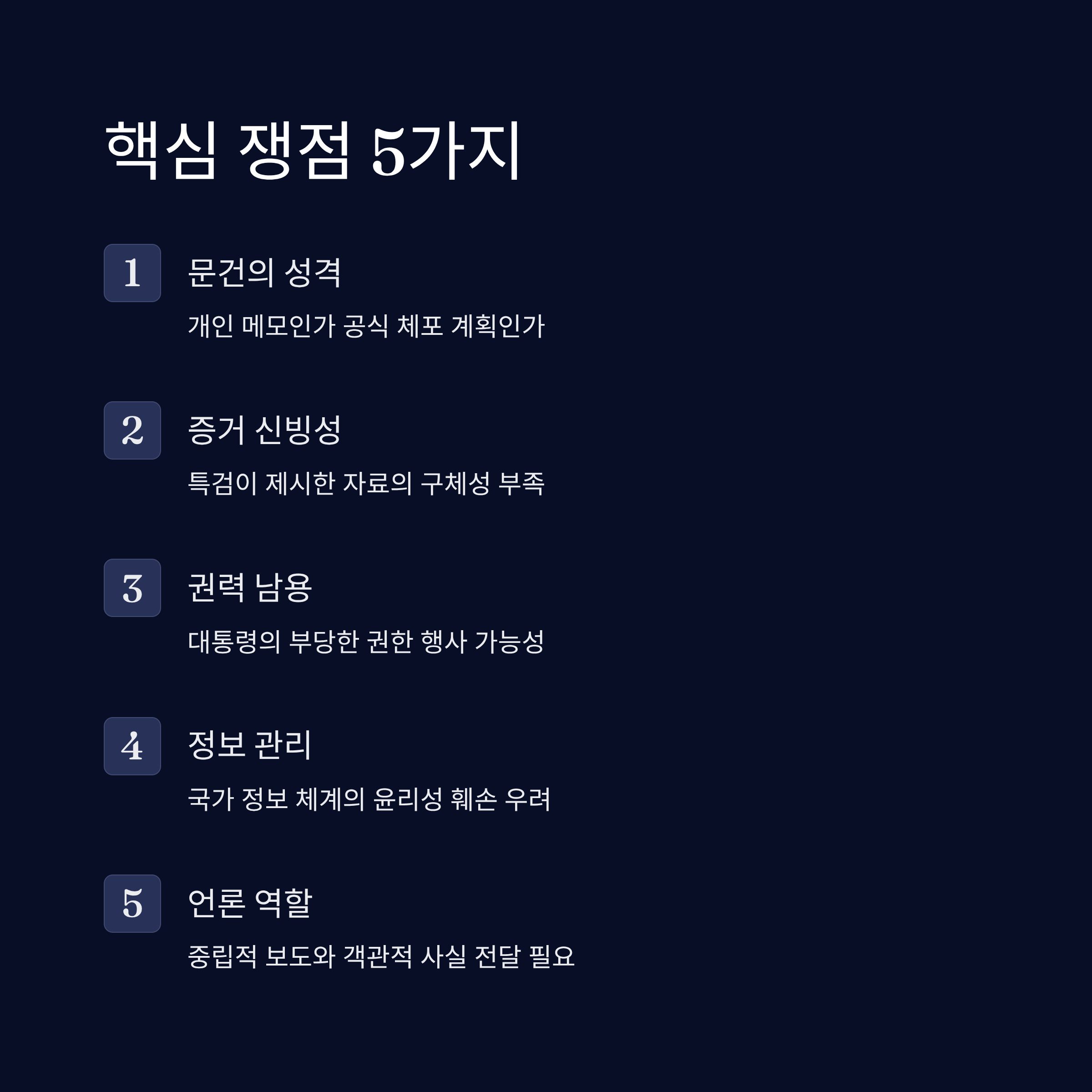 - 체포 명단에 대한 특검의 증거는 구체적 증빙이 부족하다는 비판을 받고 있습니다.