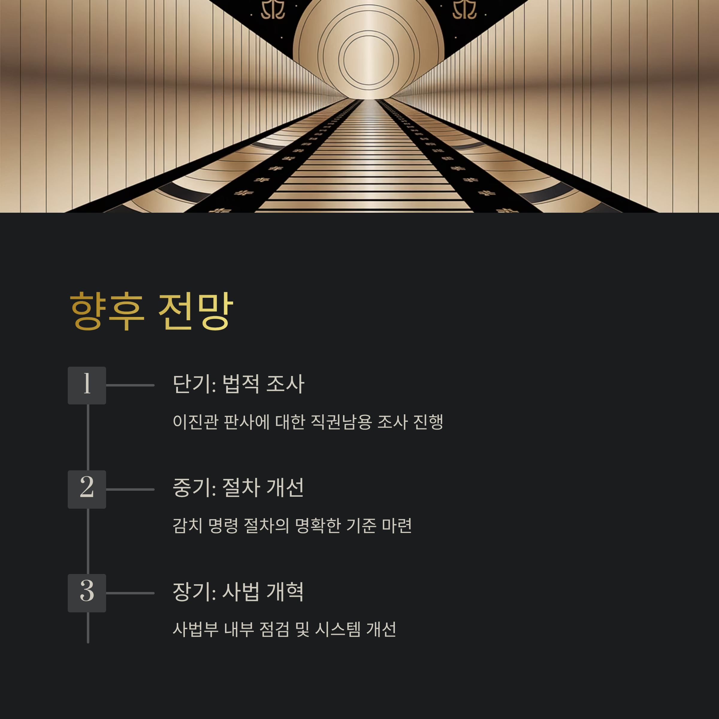 서울 구치소의 대응은 집행기관도 독립적인 판단 기준을 가질 수 있음을 보여주며, 사법부 내부의 자정작용과 절차적 정당성 확보의 중요성을 강조합니다. 이번 사건을 계기로 법원 내부의 명령 발부 절차, 인권보호 기준, 사법 책임성에 대한 논의가 본격화되어야 하며, 공정하고 투명한 사법 시스템을 위한 제도 개선이 절실합니다. 무엇보다 사법 권위는 국민의 신뢰에서 비롯된다는 사실을 잊지 말아야 할 것입니다.