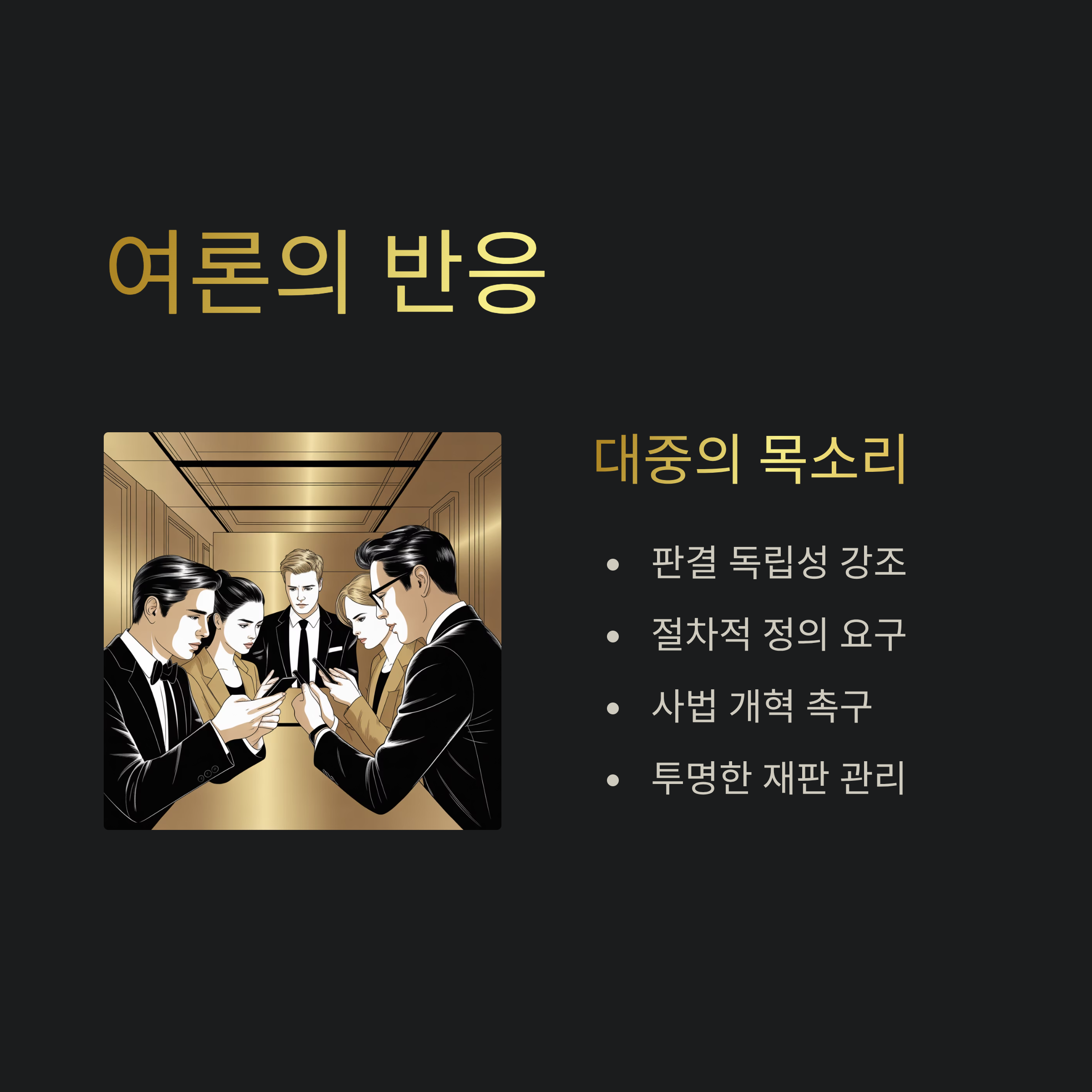 4. 대한민국 사법부의 투명성과 신뢰 회복을 위한 재판 관리 개선 필요.