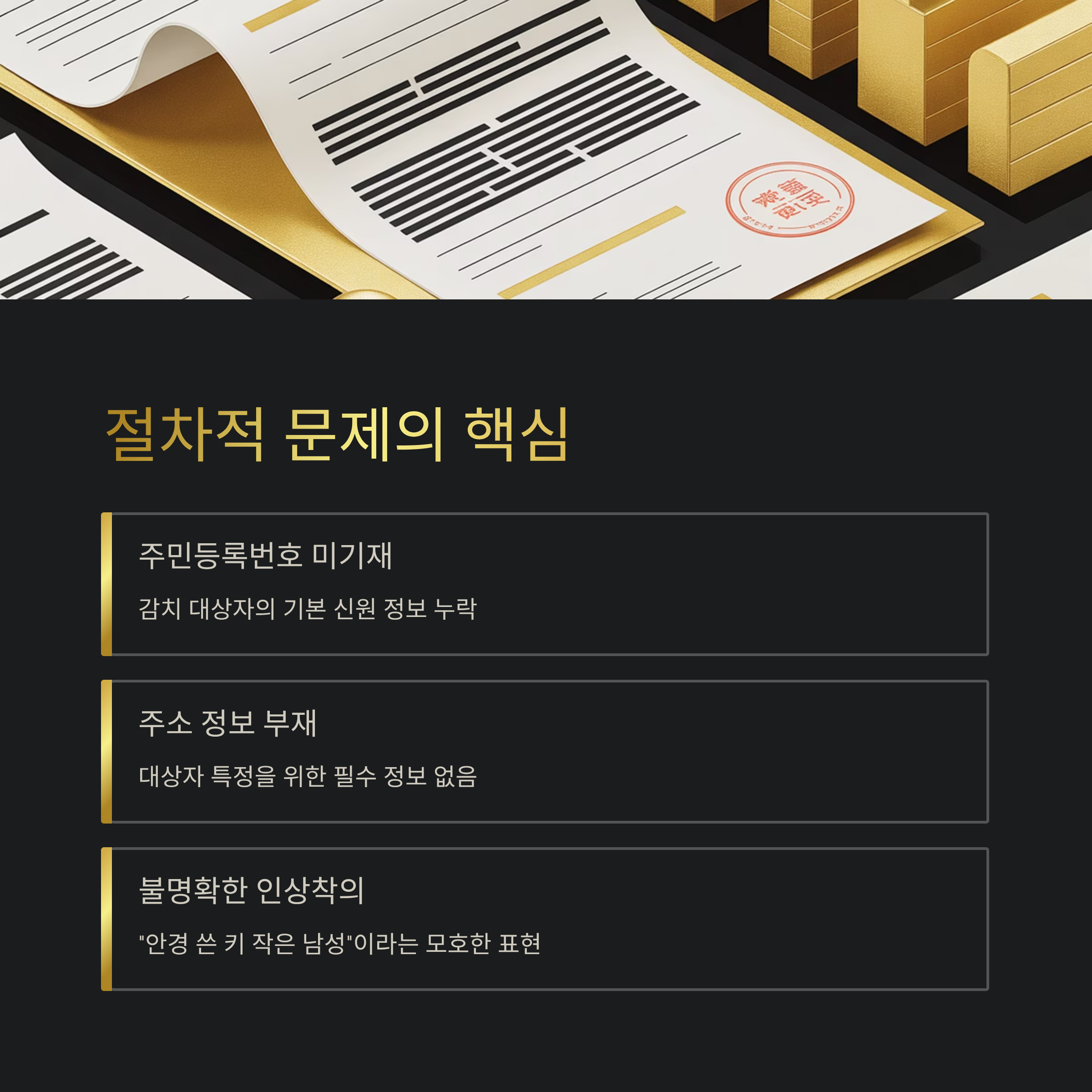 A1. 네, 감치 명령은 인적 특정이 명확할 때만 유효한데, 이번 사건은 정보 부족으로 절차적 요건을 충족하지 못했습니다.