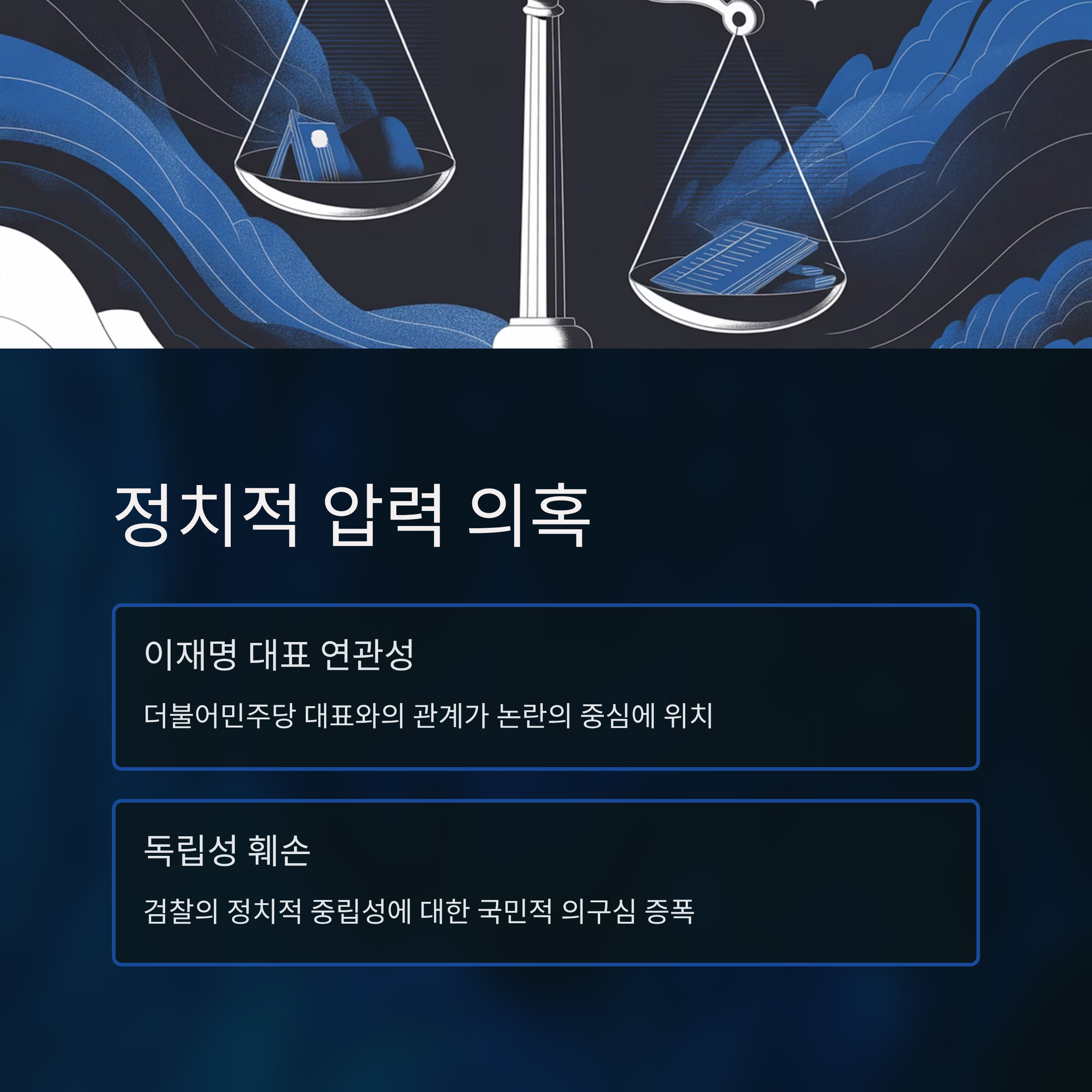 - 정치적 압력 여부와 이재명 더불어민주당 대표의 연관성이 논란의 중심에 있습니다.