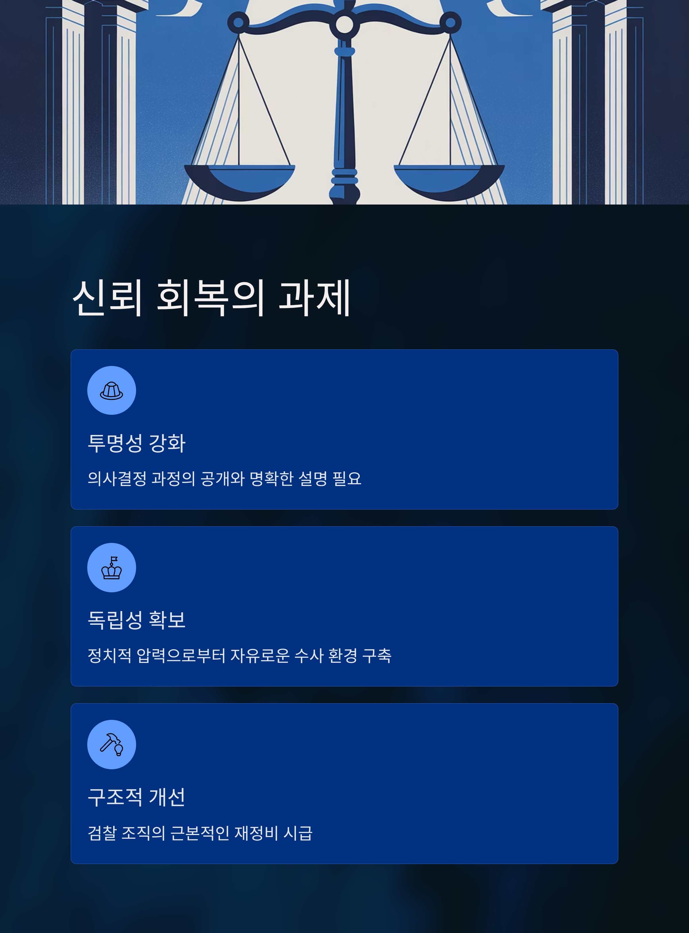 - 검찰 조직의 신뢰 회복 방향