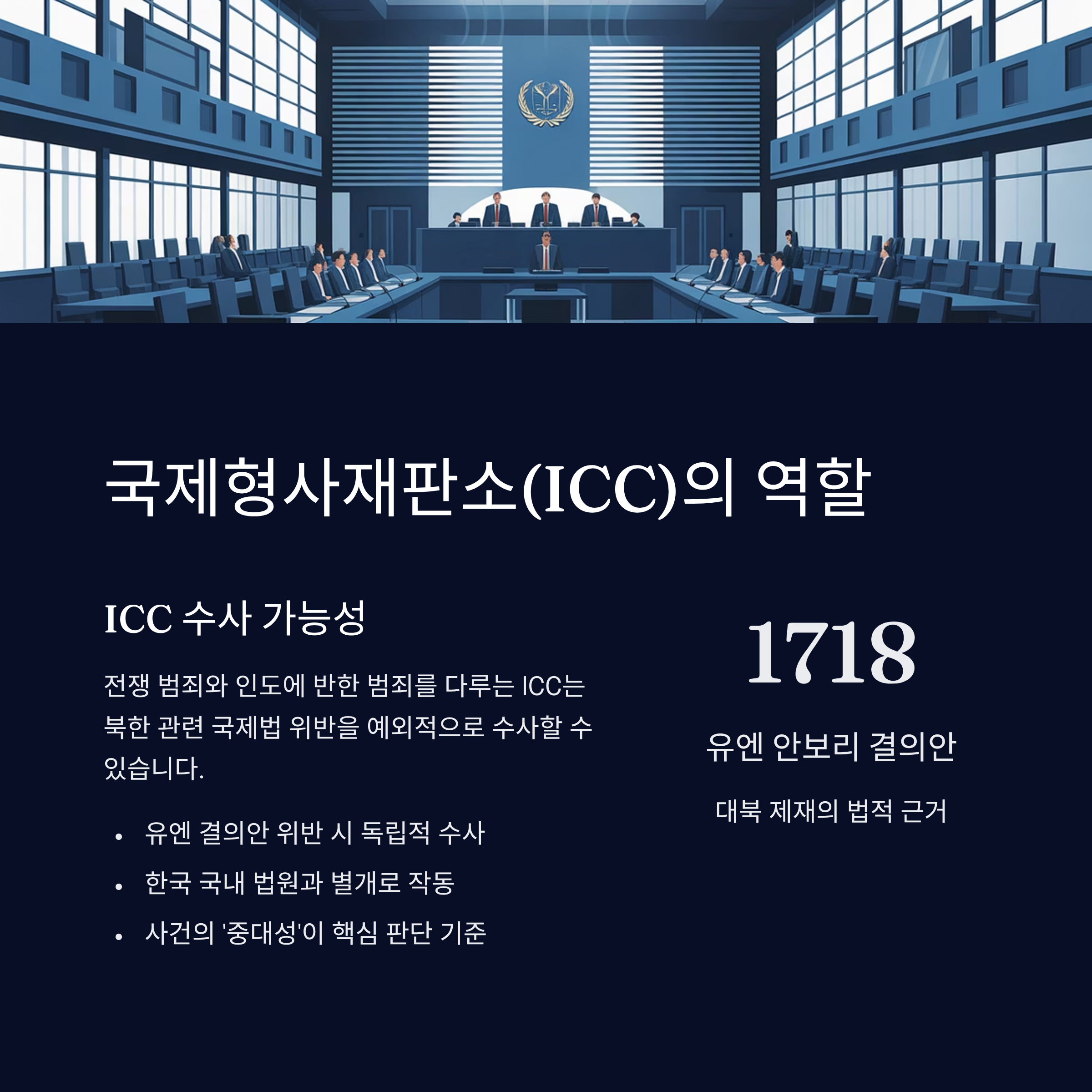 ICC는 주로 전쟁 범죄, 인도에 반한 범죄, 집단 학살 등의 문제를 다룹니다. 그러나 북한 관련 국제법 위반 사항은 예외적으로 다뤄질 가능성이 있습니다. 이재명 대표의 혐의, 특히 대북 송금이 유엔 안보리 결의안 1718조의 명백한 위반으로 판명될 경우, ICC의 수사 가능성은 상당히 높아질 수 있습니다. 유엔 회원국은 의무적으로 결의안을 준수해야 하며, 사법적 독립성을 보장받는 ICC의 판단은 한국 국내 법원과 상관없이 독립적으로 작동할 수 있습니다. 현재까지, ICC에서의 예비 심사는 해당 사건의 "중대성"을 주요 판단 기준으로 작용합니다. 대북 송금과 관련해 국제적으로 이를 위반한 혐의가 증명된다면, 한국 정치 지도자와 관련자들이 국제법의 틀 내에서 책임을 지게 될 가능성이 있습니다.