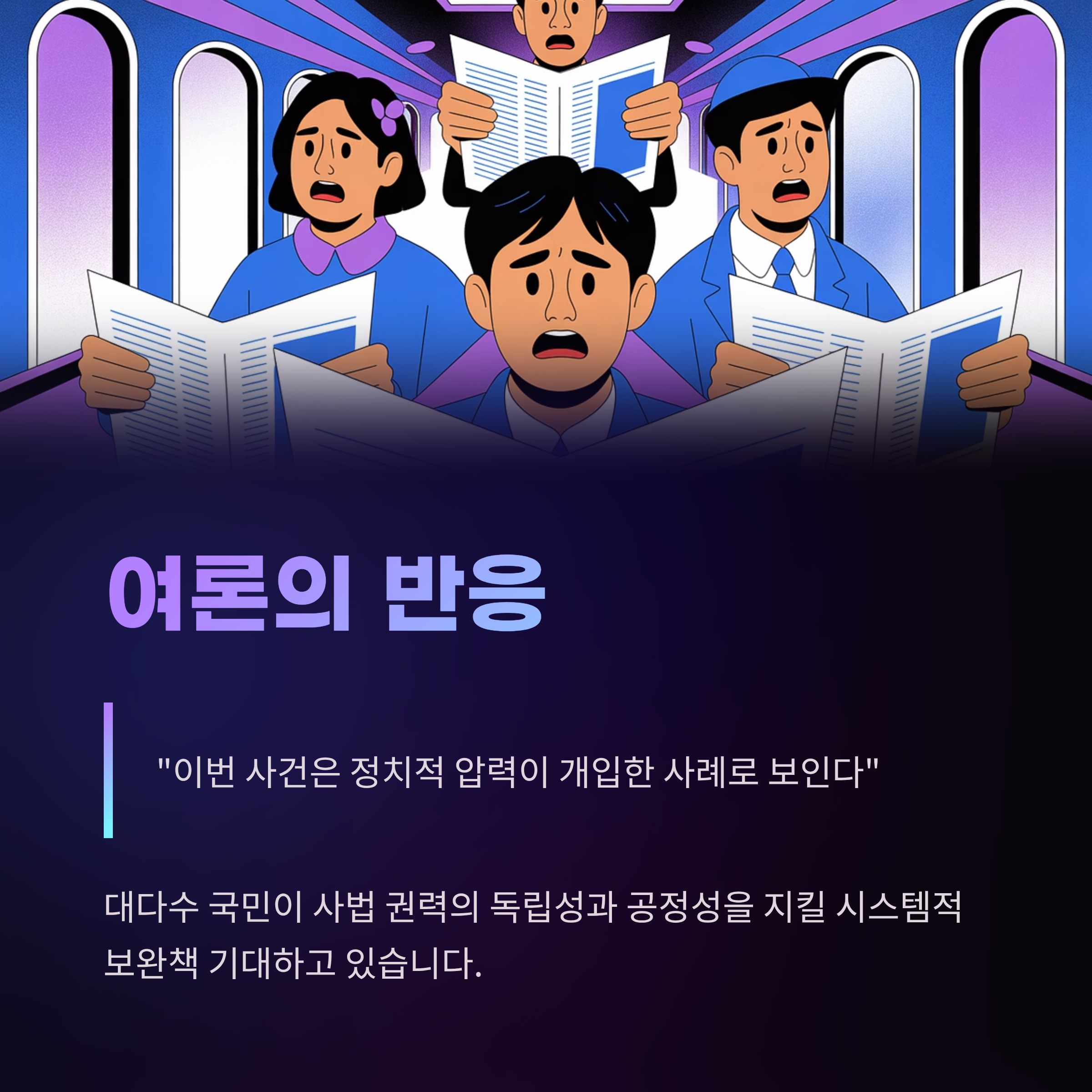 이 사건은 대한민국 사법 체계의 신뢰 회복을 위해 공정성과 절차의 중요성을 더욱 부각시키고 있습니다.