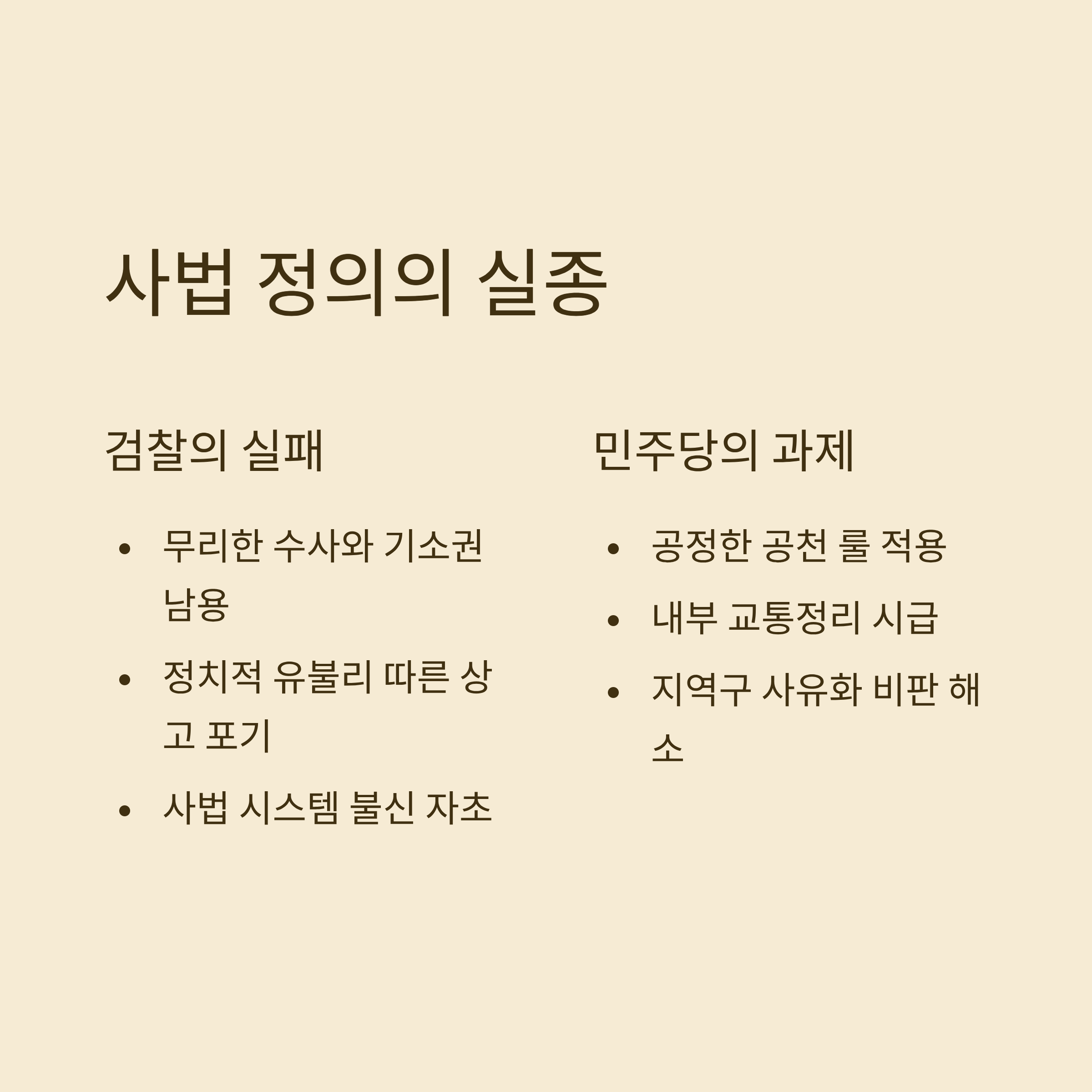 - 4. 결론: 사법 정의의 실종과 민주당 내부 교통정리의 필요성