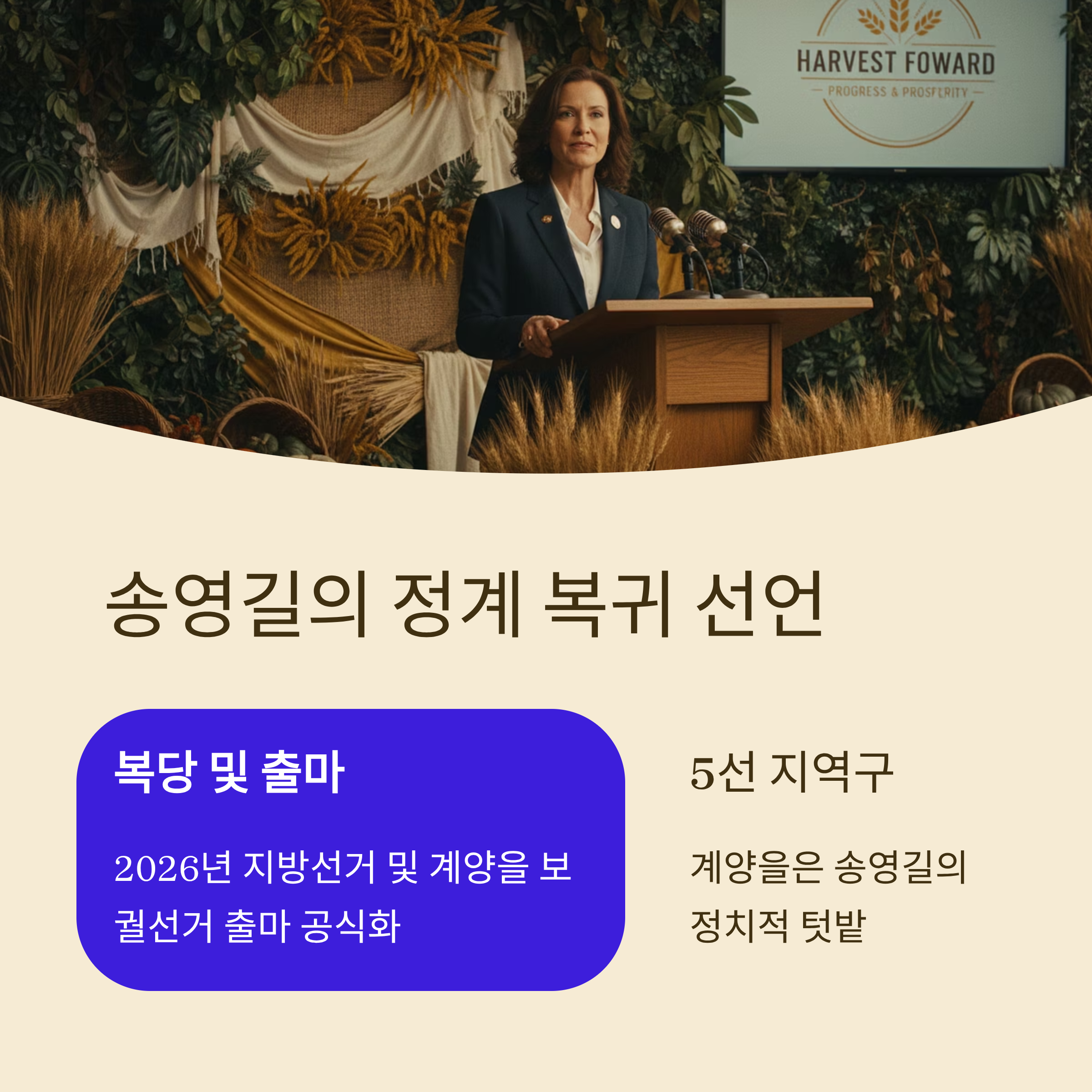 송영길의 정계 복귀: 무죄 확정 직후 송영길 전 대표는 민주당 복당과 함께 2026년 지방선거 및 국회의원 보궐선거 출마를 공식 선언했습니다.