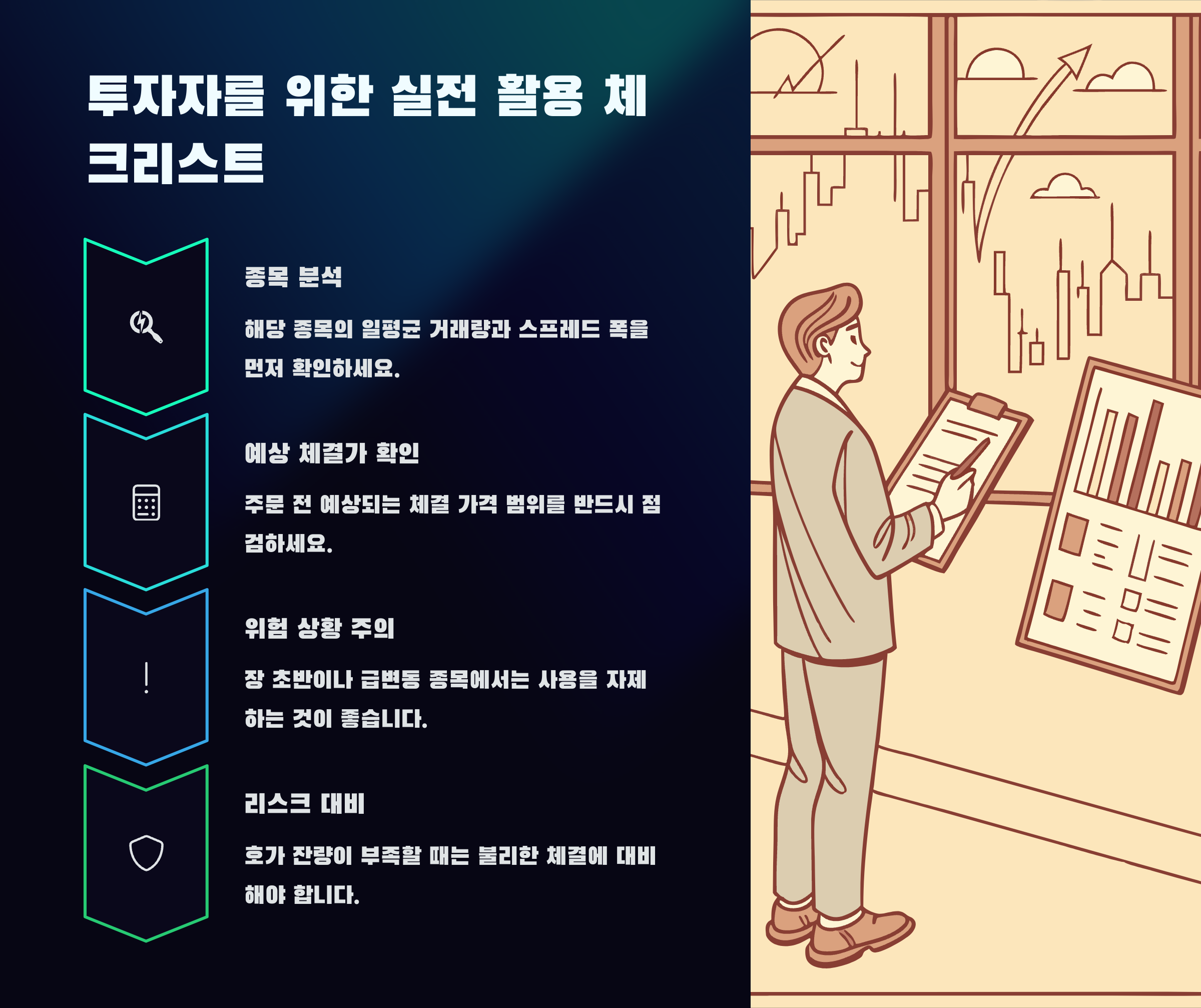 반면, 주가 급등락이 심한 테마주, 소형주에서는 스프레드 호가의 위험성을 인지하고, 지정가 주문과 병행하는 전략이 요구됩니다. 손절가와 목표가를 미리 설정해두는 습관이 필요하며, 단기 수익을 노리는 전략보다는 장기 투자자에게는 다소 불리한 방식일 수 있습니다.