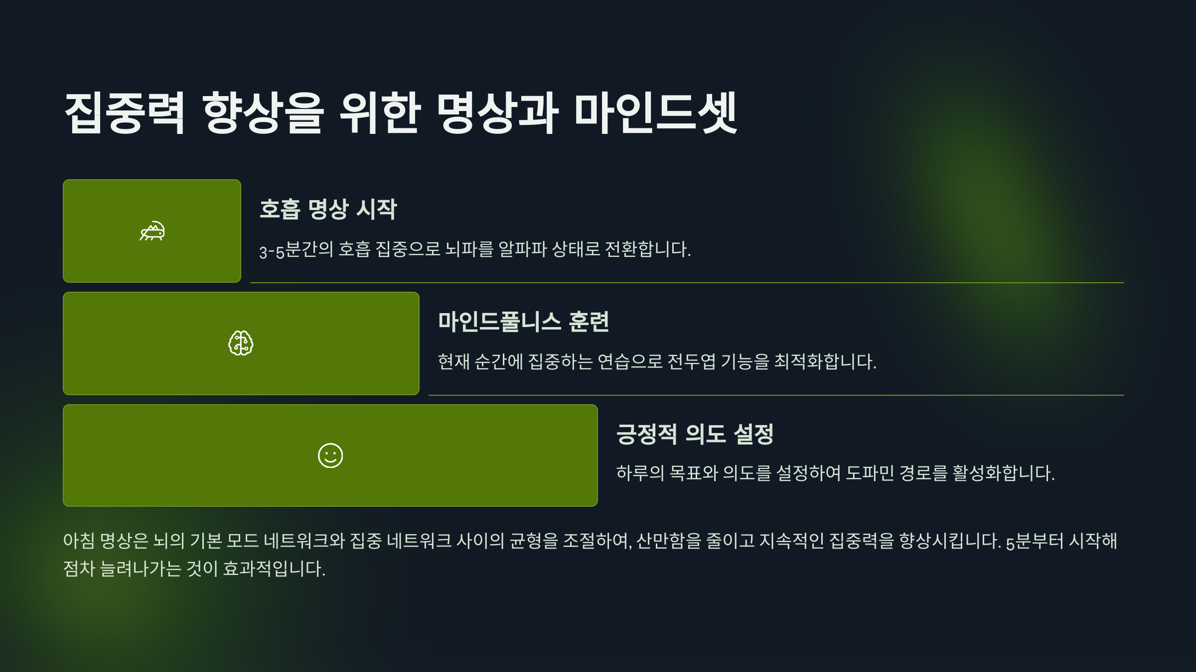 - 뇌과학 기반 집중력 향상 메커니즘